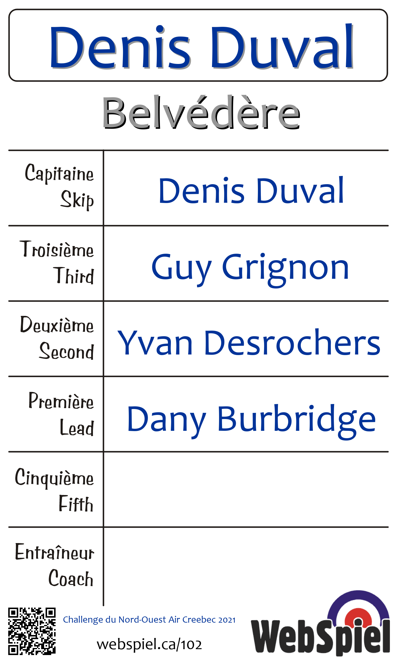 Club de curling du Belvédère, Sheet 2 · B