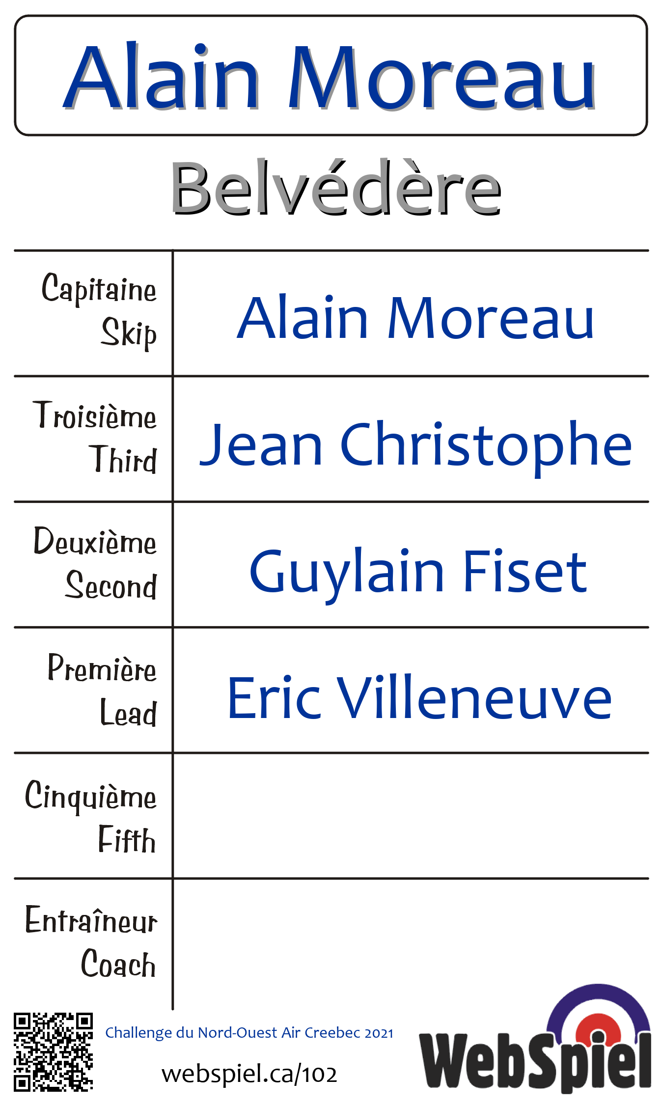Saturday, October 30th, 2021, at 10:15am EDT Club de curling du Belvédère, Sheet 4 · D | |||||||||