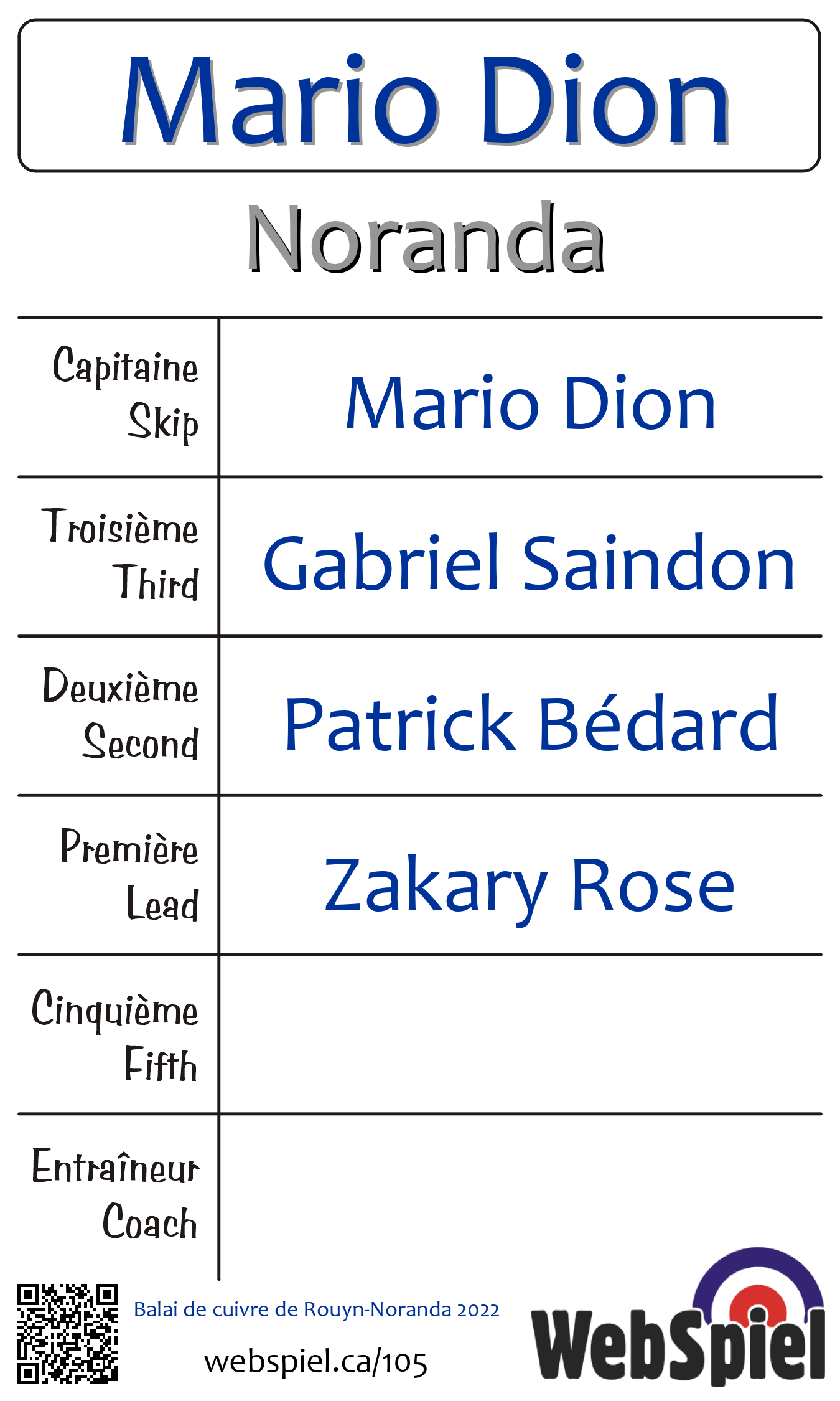 Saturday, March 19th, 2022, at 1:00pm EDT Club de curling Noranda, Sheet 2 · B, Winner › A26, Loser › B02 | |||||||||