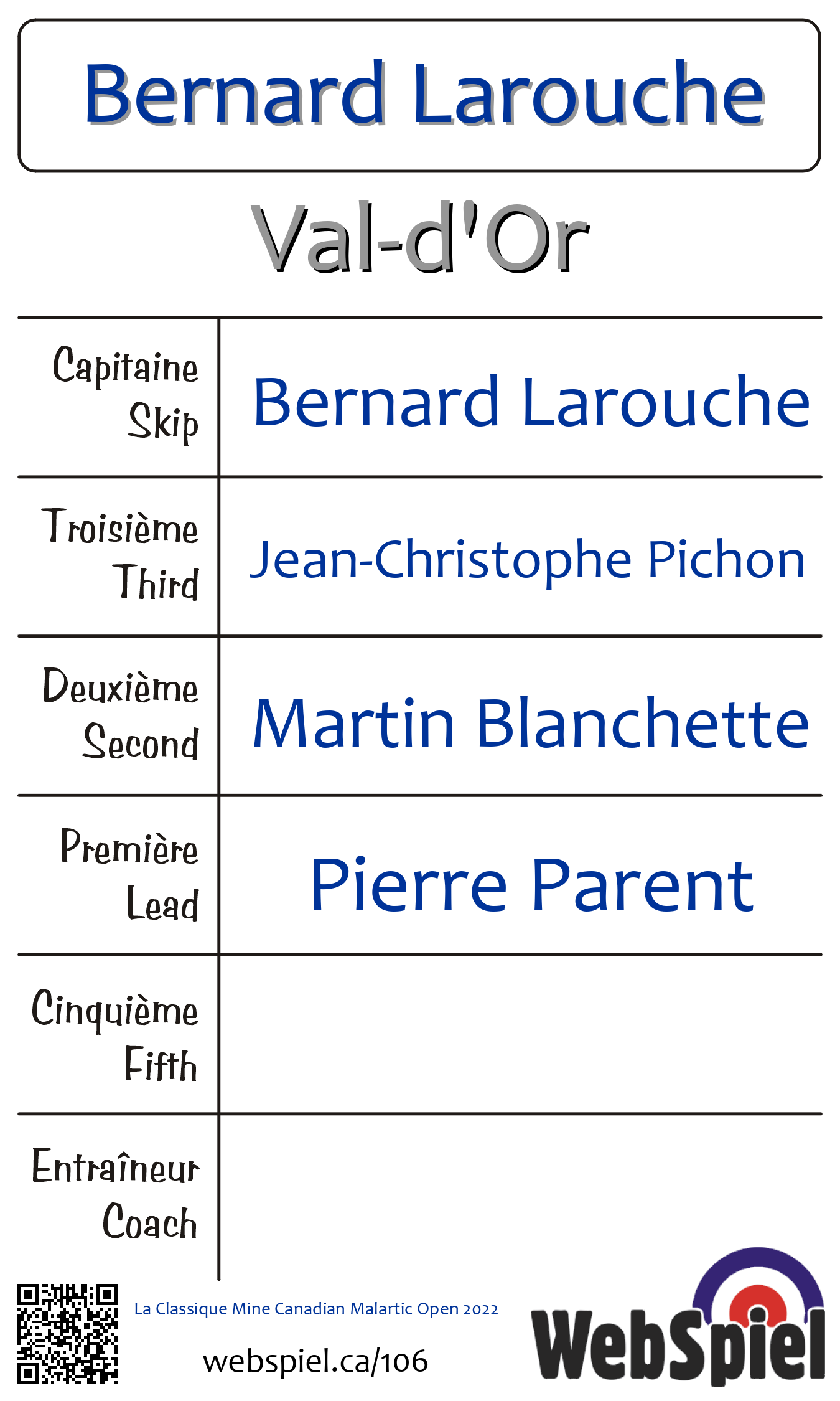 D FinalSunday, April 10th, 2022, at 3:00pm EDT Club de curling du Belvédère, Sheet 4 · D | |||||||||