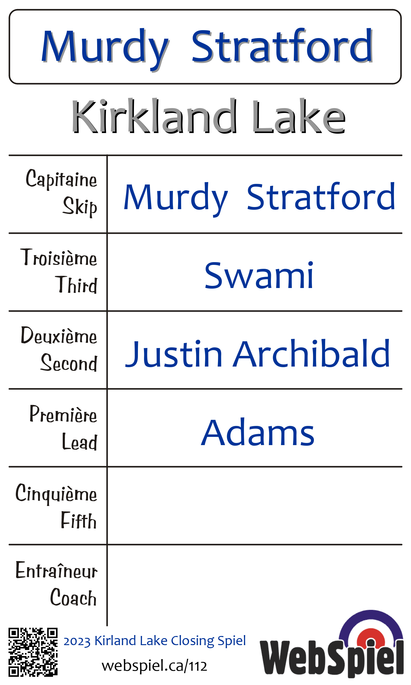 | Skip | Murdy Stratford |
