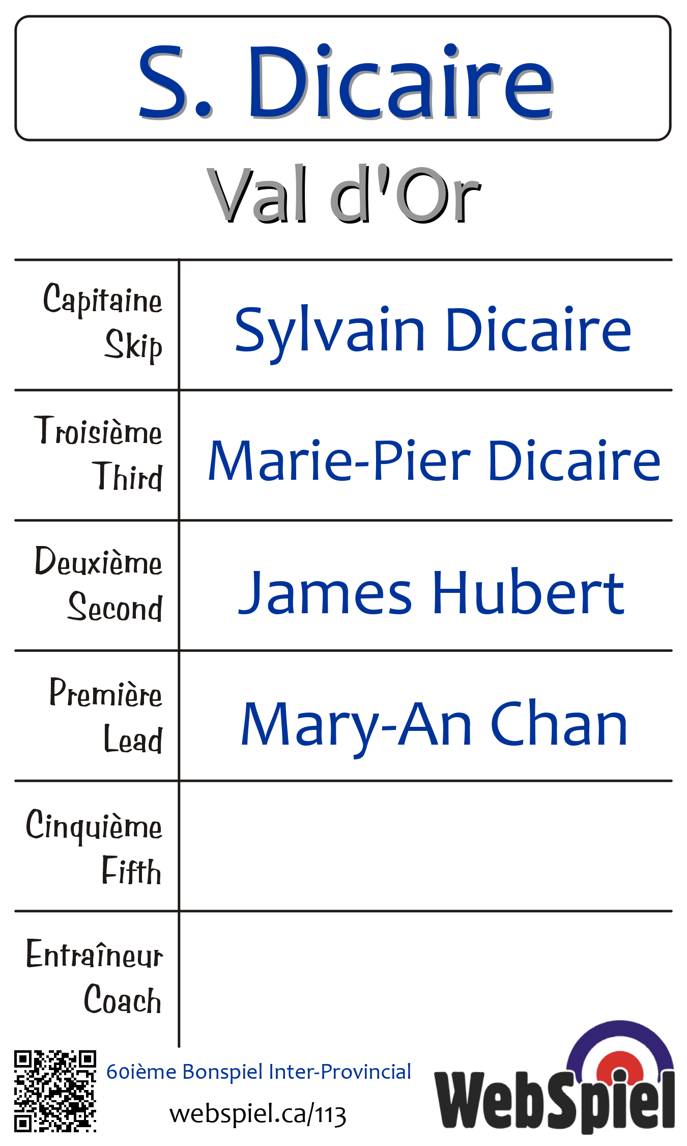 Completed. 60ième Bonspiel Inter-Provincial · Draw A17