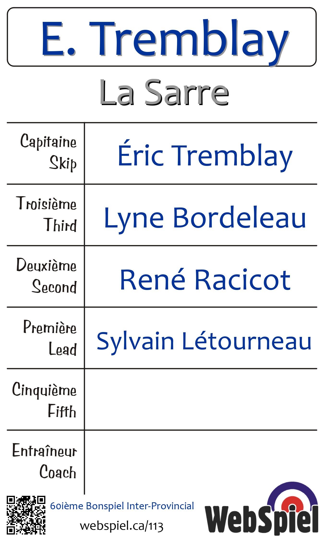 Saturday, April 22nd, 2023, at 9:15pm EDT Club de curling d'Amos, Sheet 2 · B, Winner › A29, Loser › OUT | |||||||||