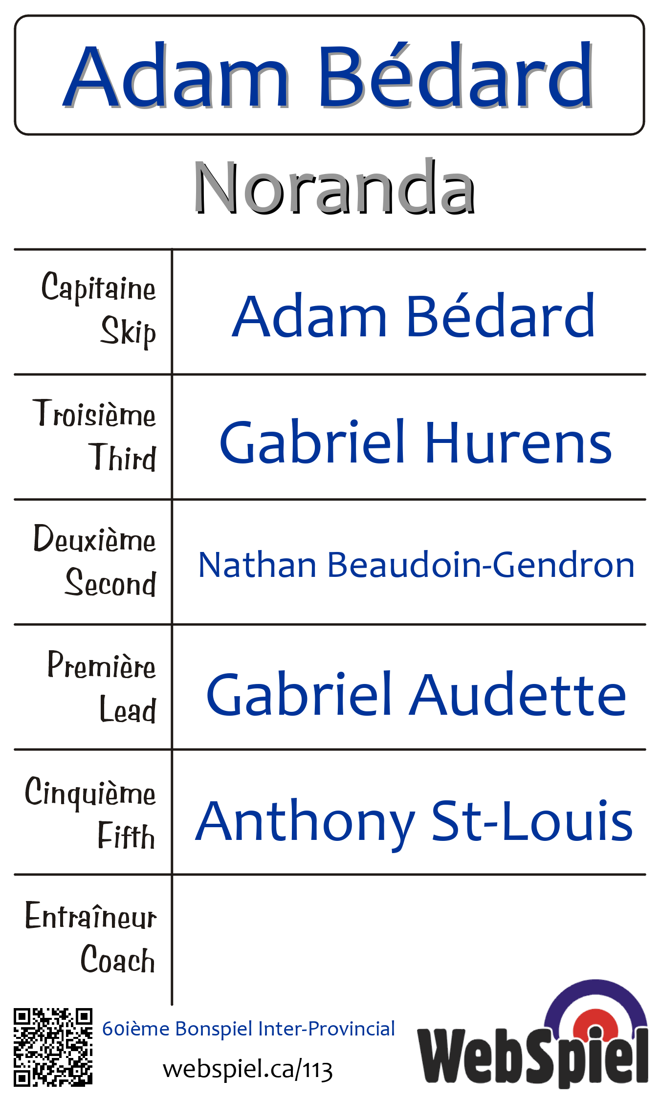 | Club | Noranda Club de curling Noranda 218 av. Murdoch Rouyn-Noranda, QC J9X 1E6 CANADA T: 819-762-7365 http://www.curlingnoranda.ca/ 6 sheets |