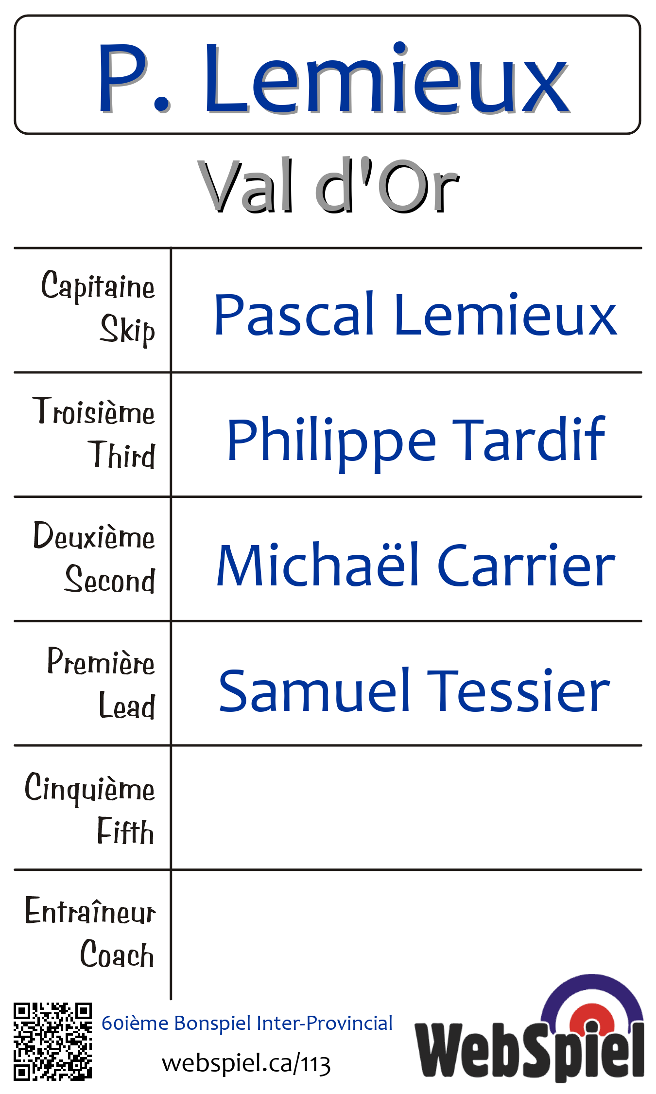 Completed. 60ième Bonspiel Inter-Provincial · Draw D05