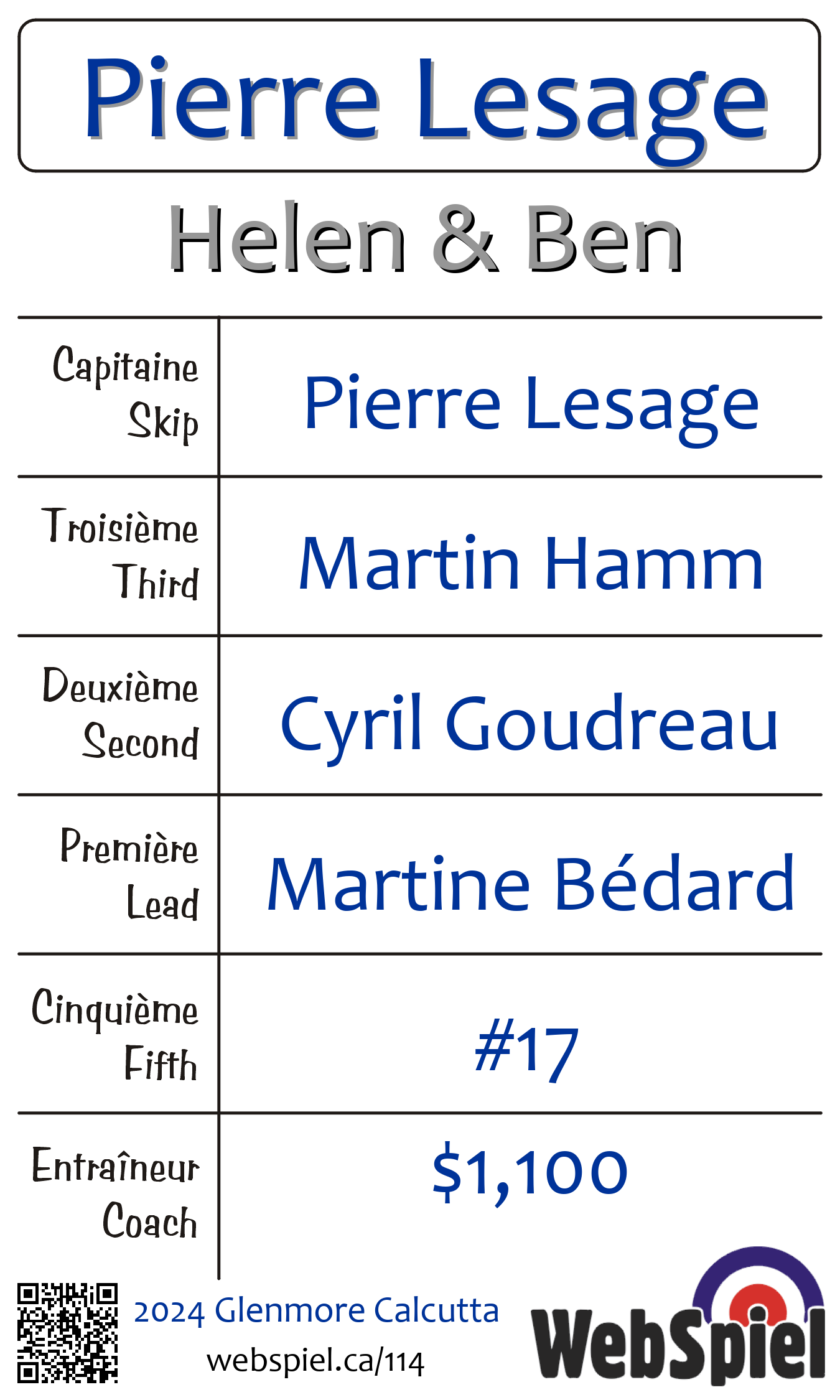 Sunday, February 4th, 2024, at 1:15pm EST Glenmore Curling Club, Sheet 211 · A, Winner › A14, Loser › C06 | |||||||||