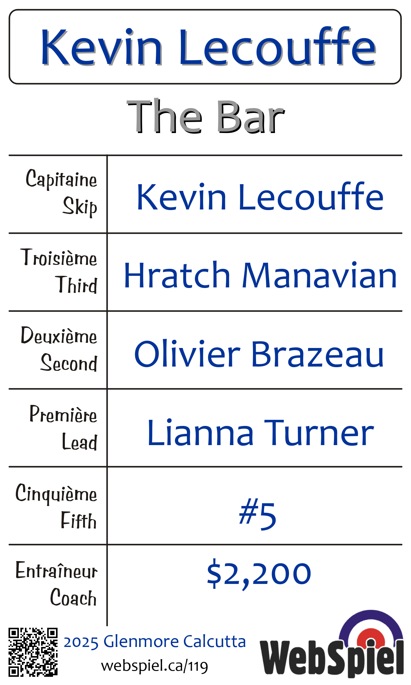 | Skip | Kevin Lecouffe |
