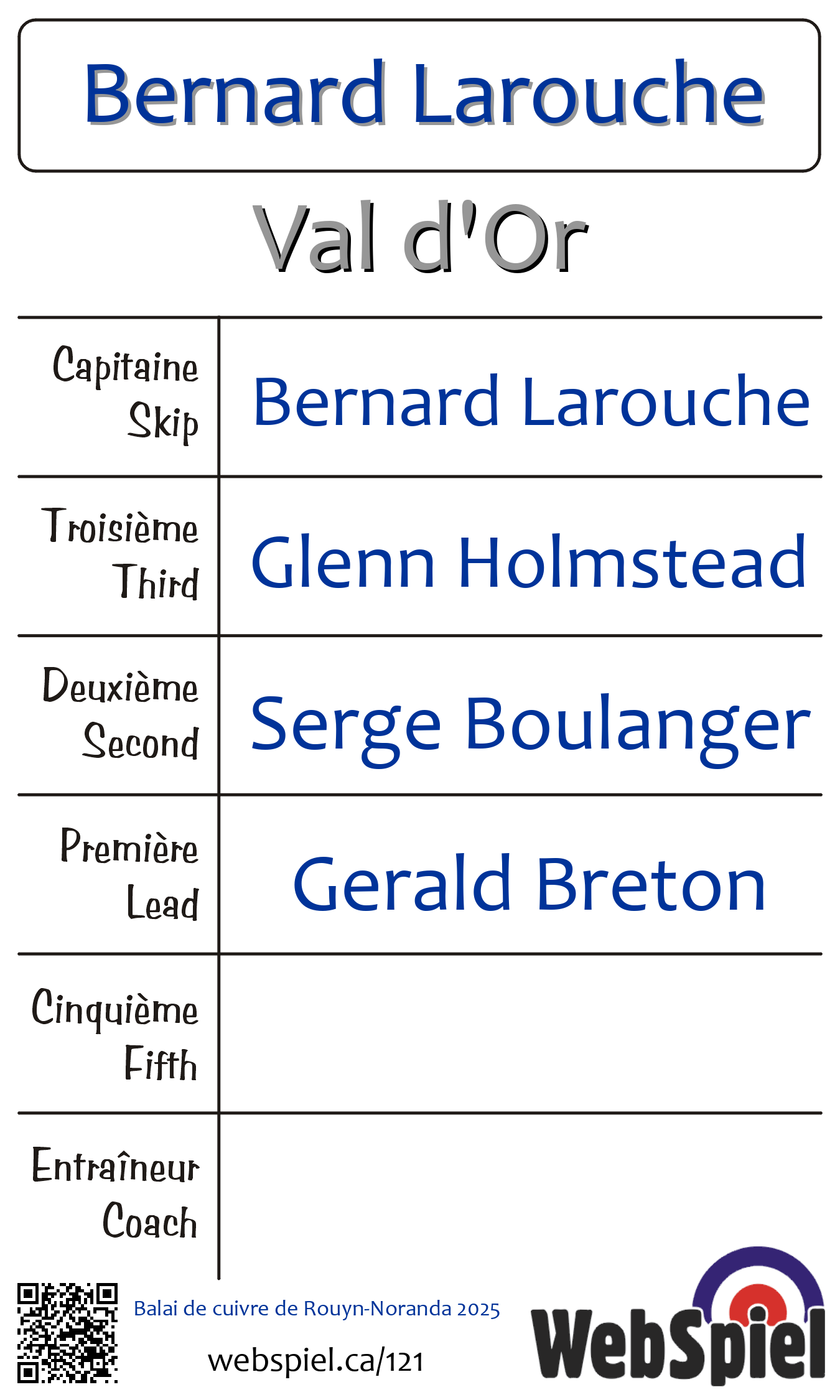 Sunday, March 2nd, 2025, at 11:30am EST Club de curling Noranda, Sheet 3 · C, Winner › C19, Loser › OUT | |||||||||