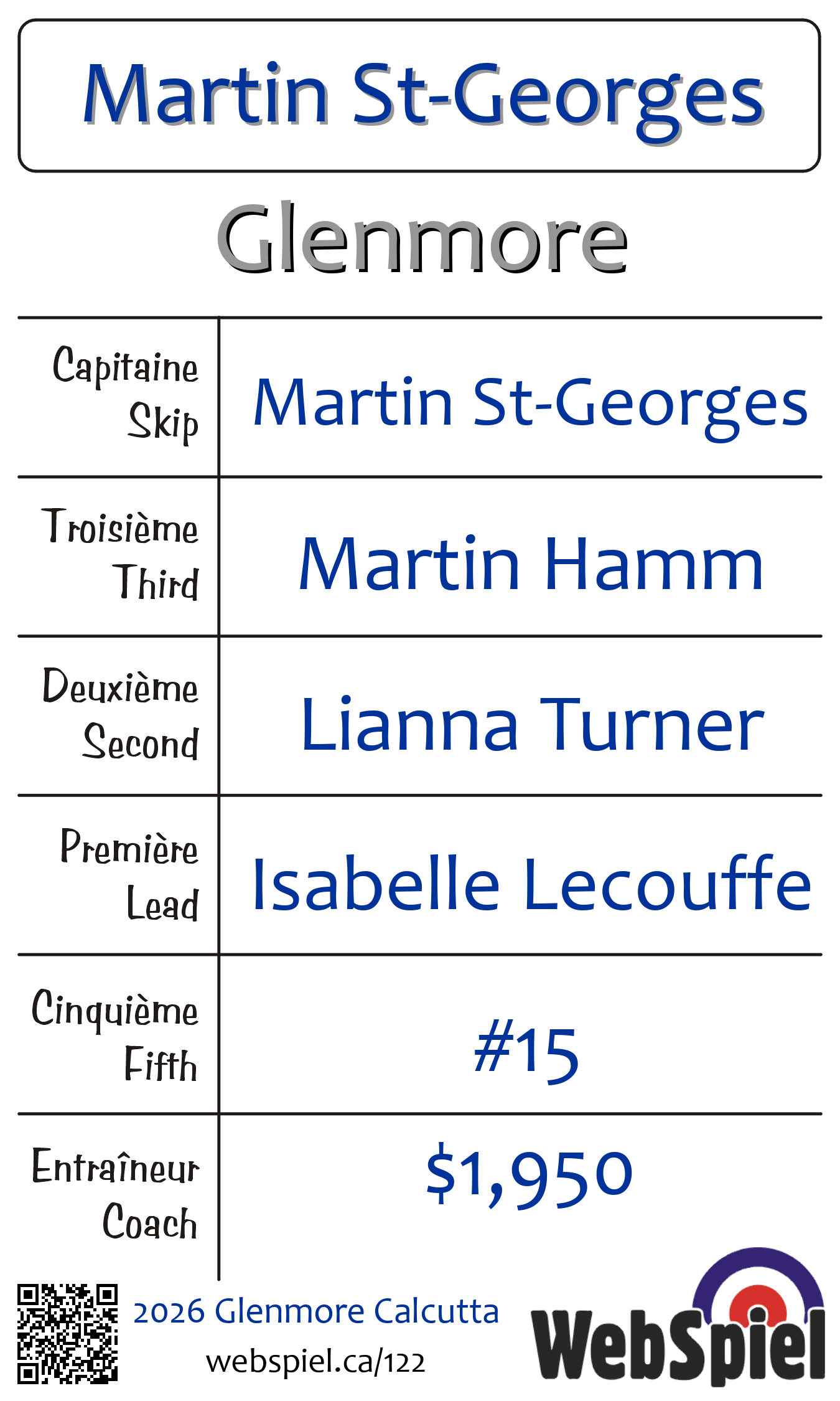 | Skip | Martin St-Georges |
