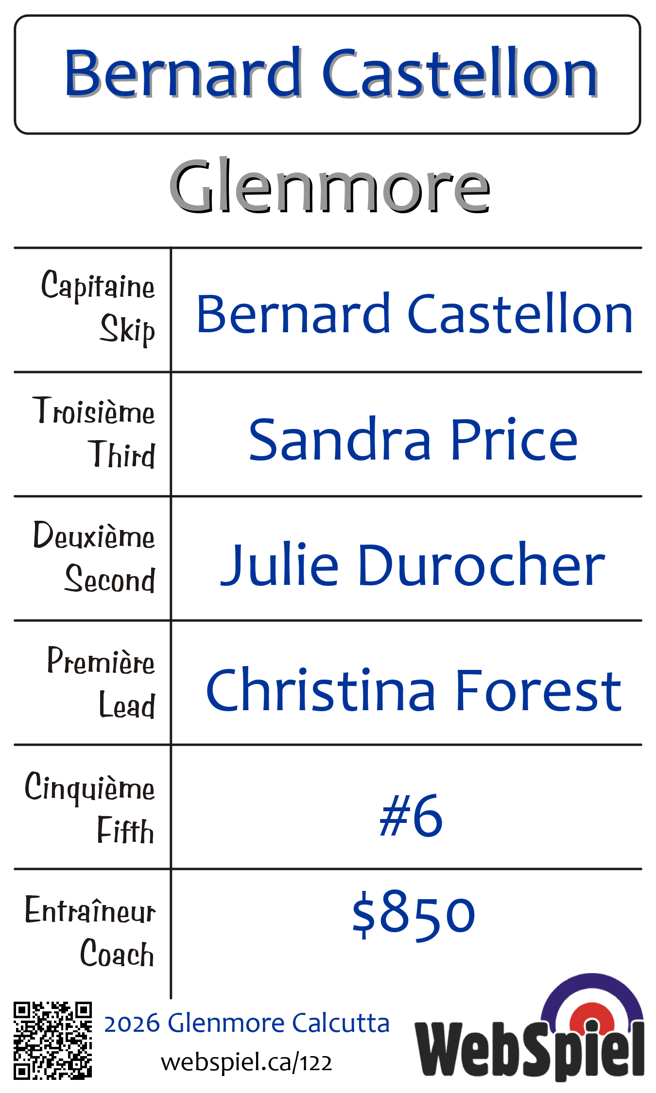 Sunday, February 1st, 2026, at 1:00pm EST Glenmore Curling Club, Sheet 213 · C, Winner › A10, Loser › C02 | ||||||||||
