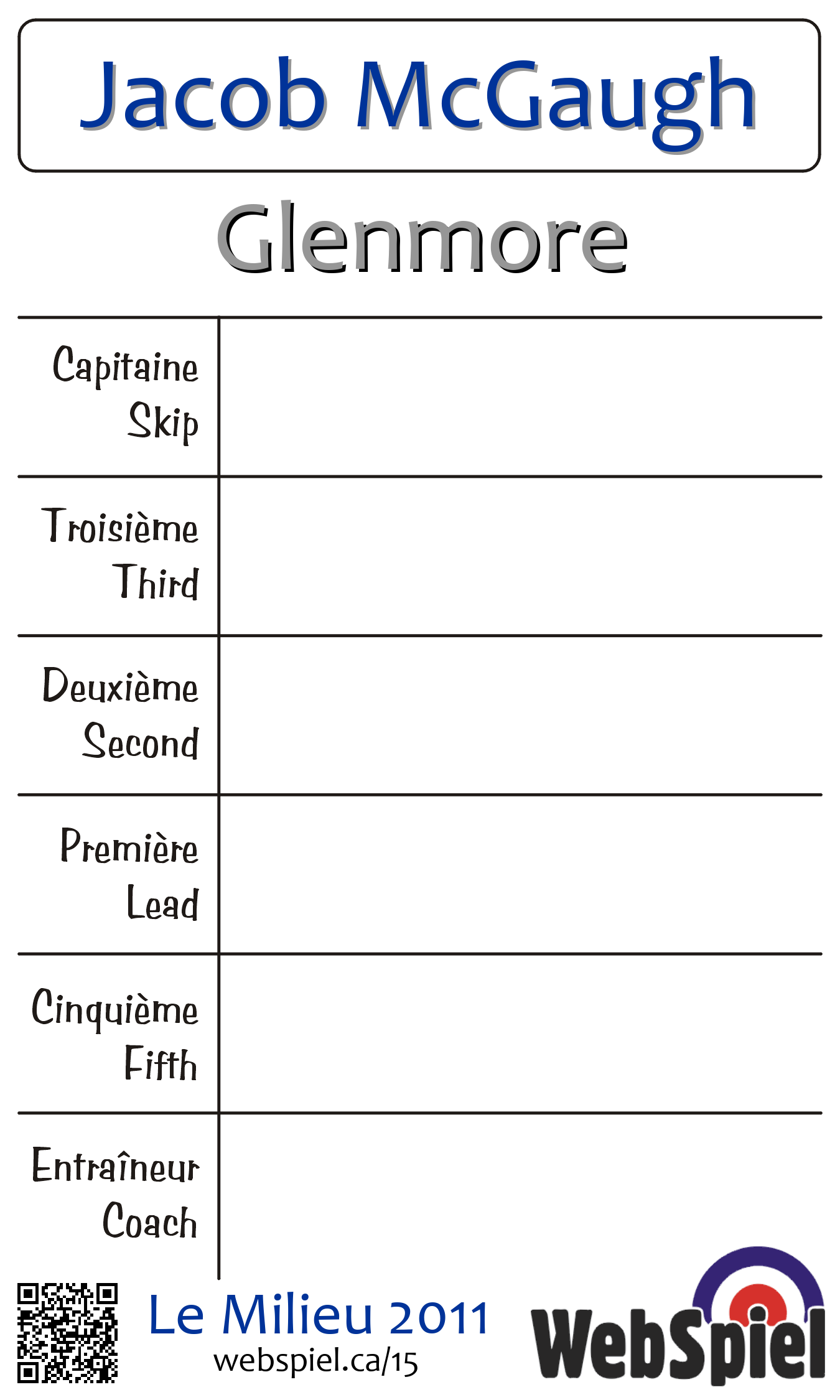 Saturday, February 5th, 2011, at 5:00pm EST Glenmore Curling Club, Sheet 212 | |||||||||