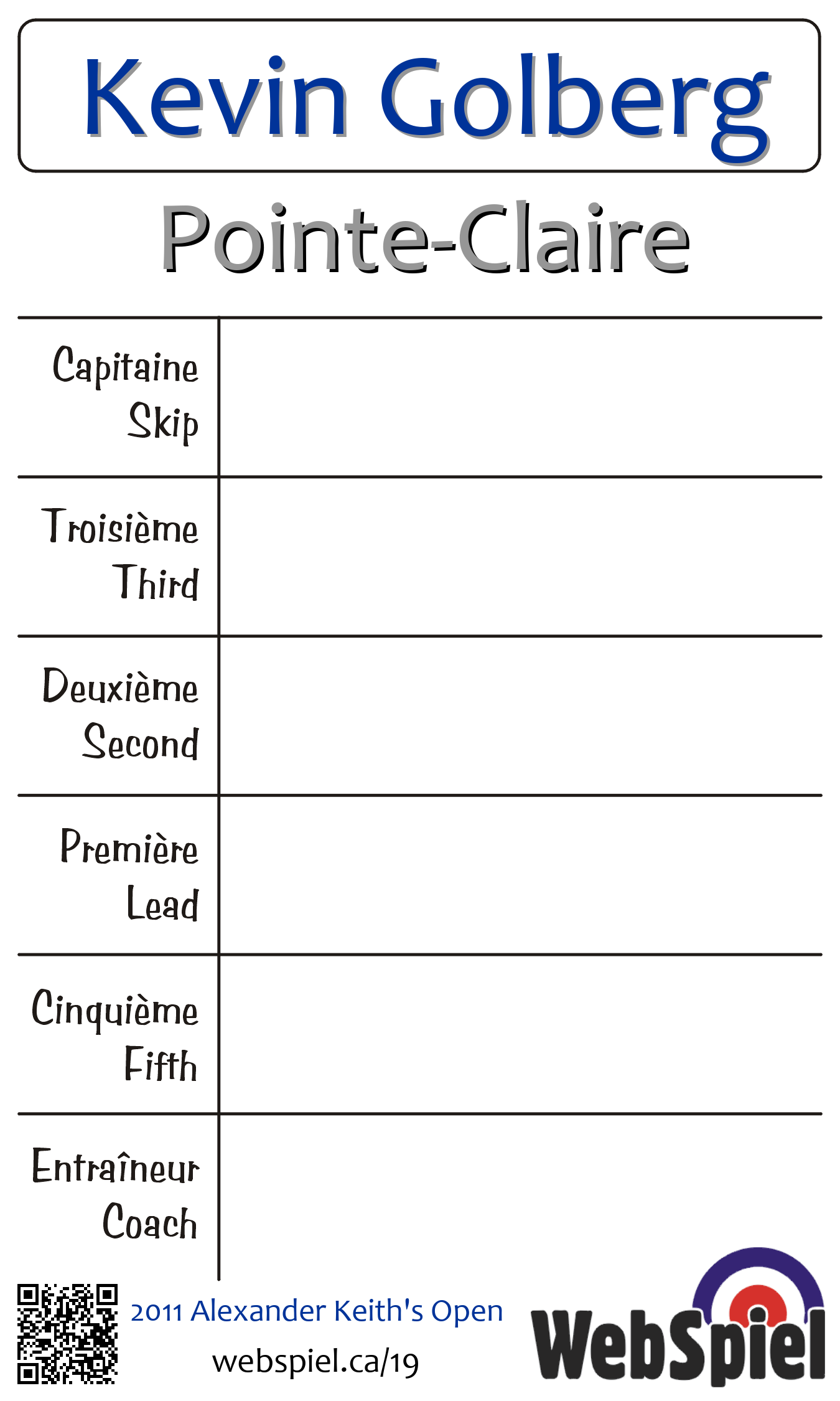 | Club | Pointe-Claire Club de curling Pointe-Claire 250 rue Lanthier C.P. 1002 Pointe-Claire, QC H9S 4H9 CANADA T: 514-695-4324 F: 514-695-1761 http://www.pointeclairecurling.com 3 sheets |