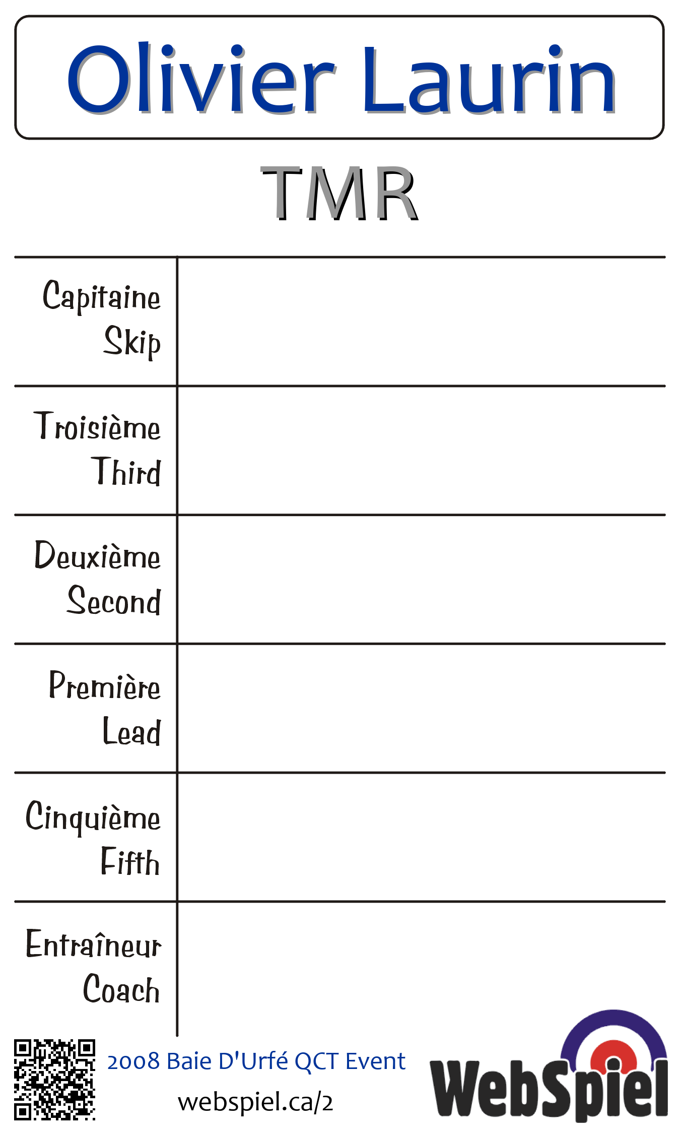 | Team | 1 - Olivier Laurin |