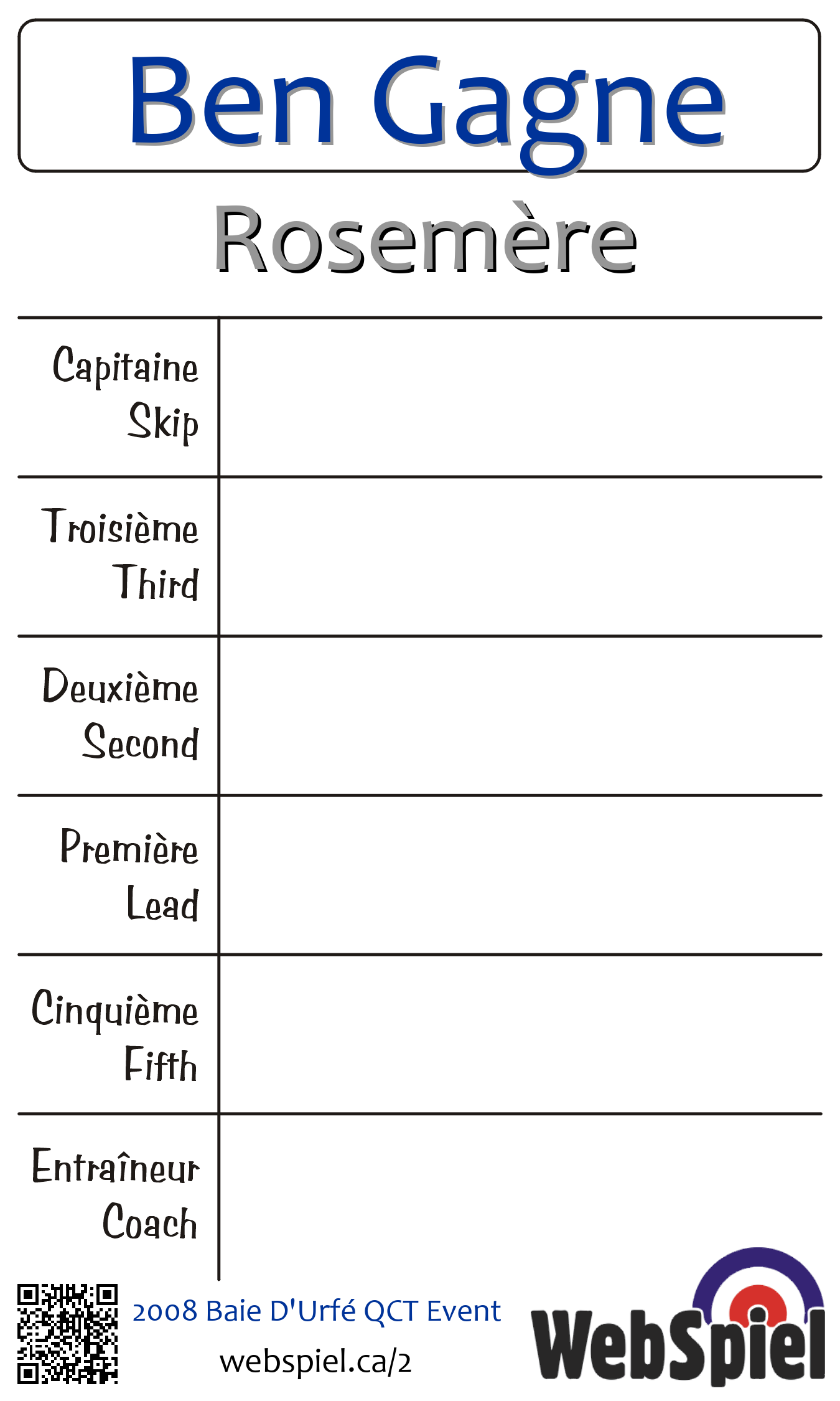 Completed. 2008 Baie D'Urfé QCT Event · Draw C05