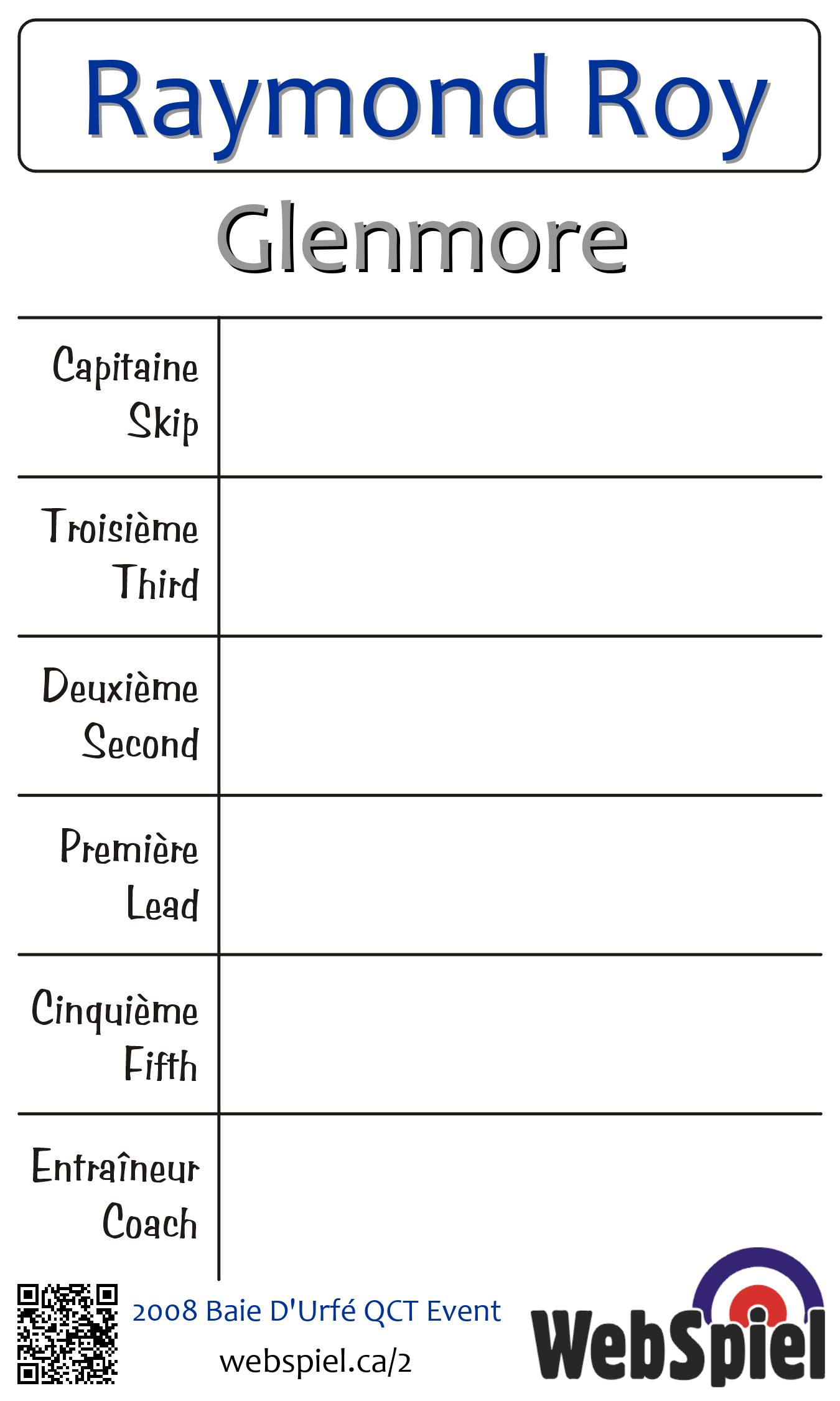 Baie d'Urfé Curling Club, Sheet 191, Winner › B11, Loser › OUT