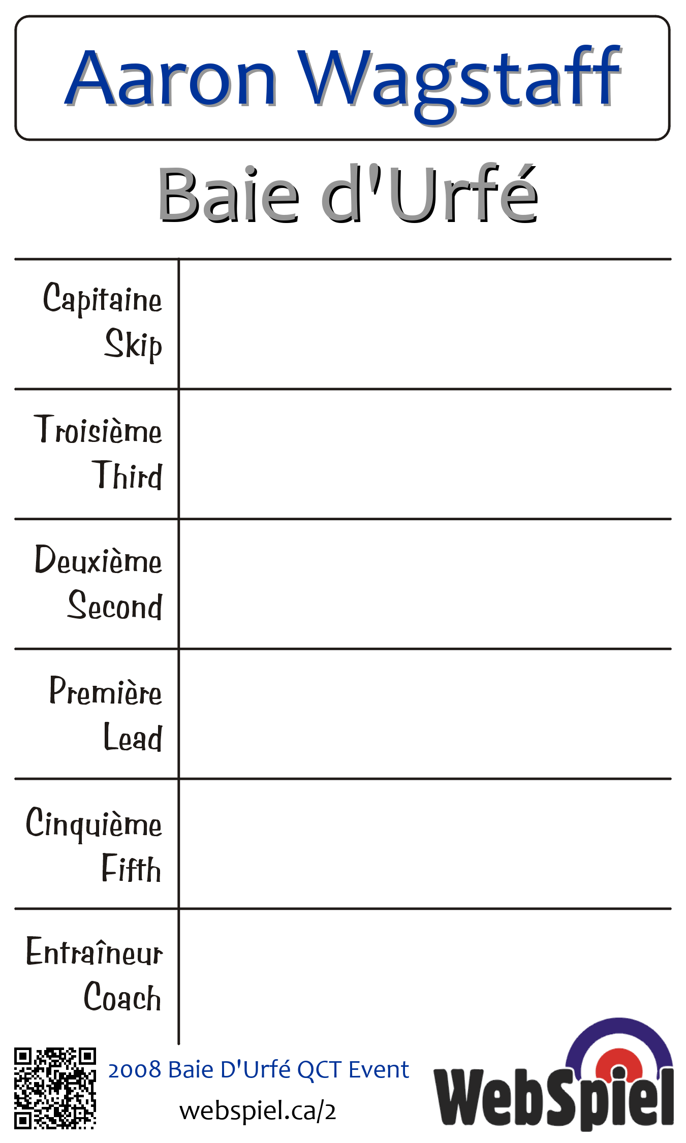 Sunday, November 30th, 2008, at 6:00pm EST Baie d'Urfé Curling Club, Sheet 192, Winner › B08, Loser › C12 | ||||||||||