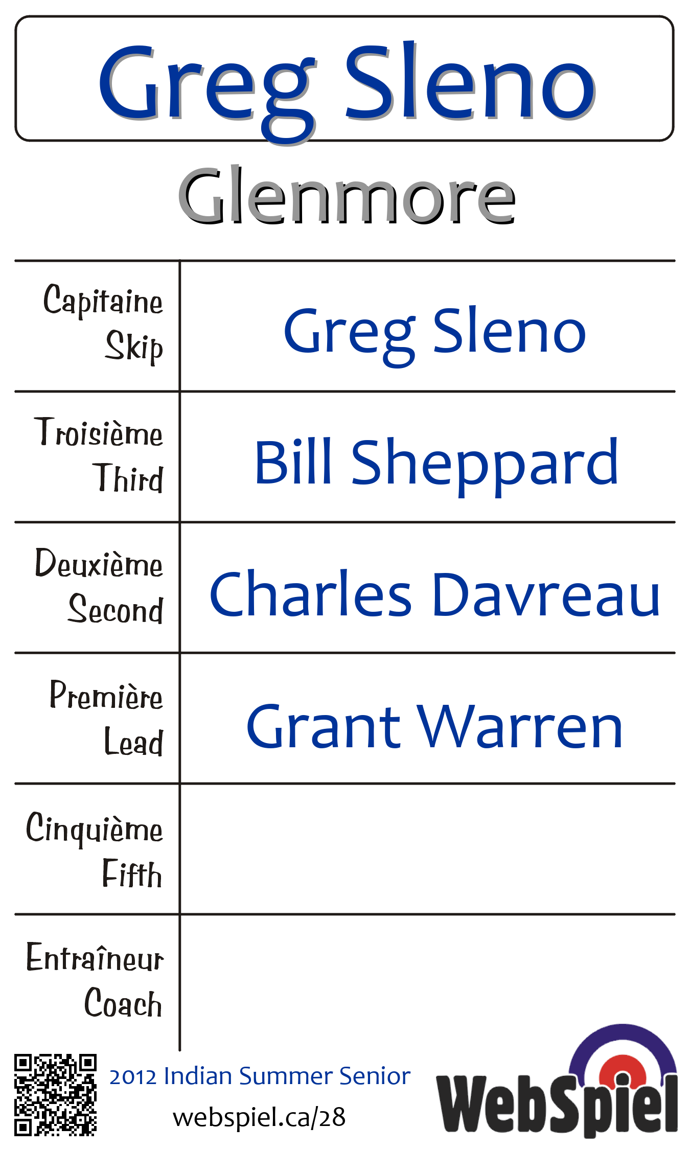 Completed. 2012 Indian Summer Senior · Draw C02