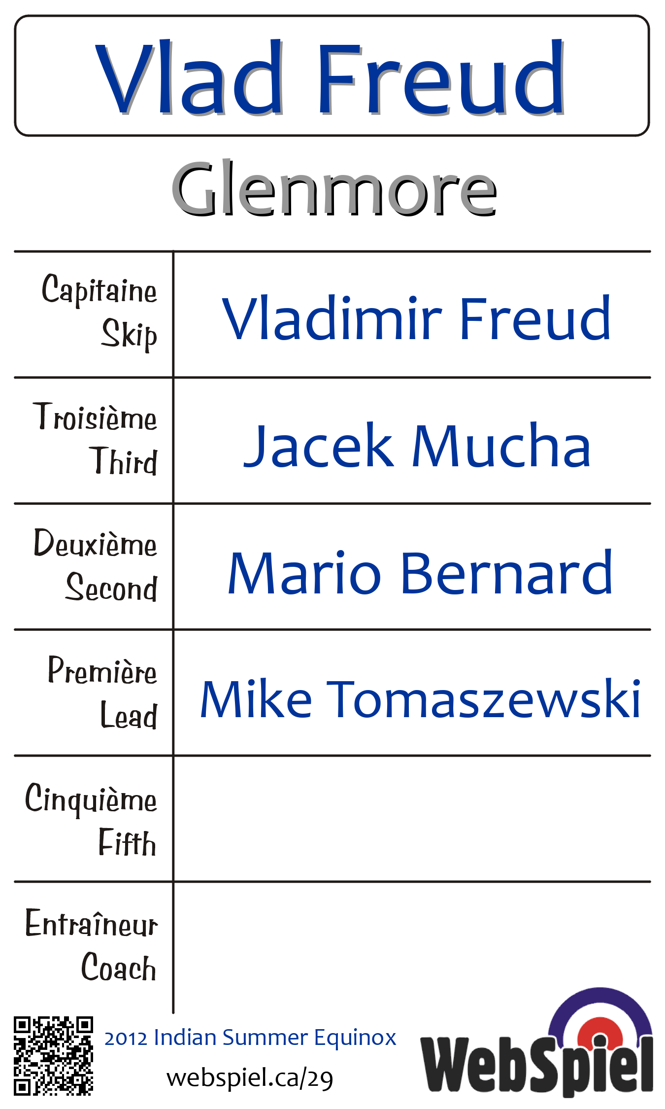 Saturday, October 13th, 2012, at 3:30pm EDT Glenmore Curling Club, Sheet 214, Winner › C09, Loser › OUT | |||||||||