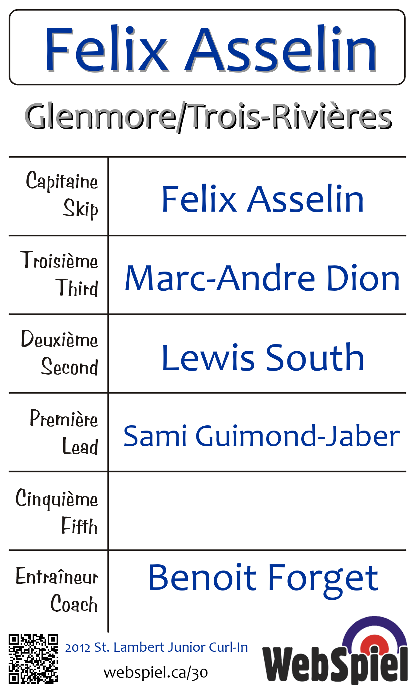 | Skip | Felix Asselin |
