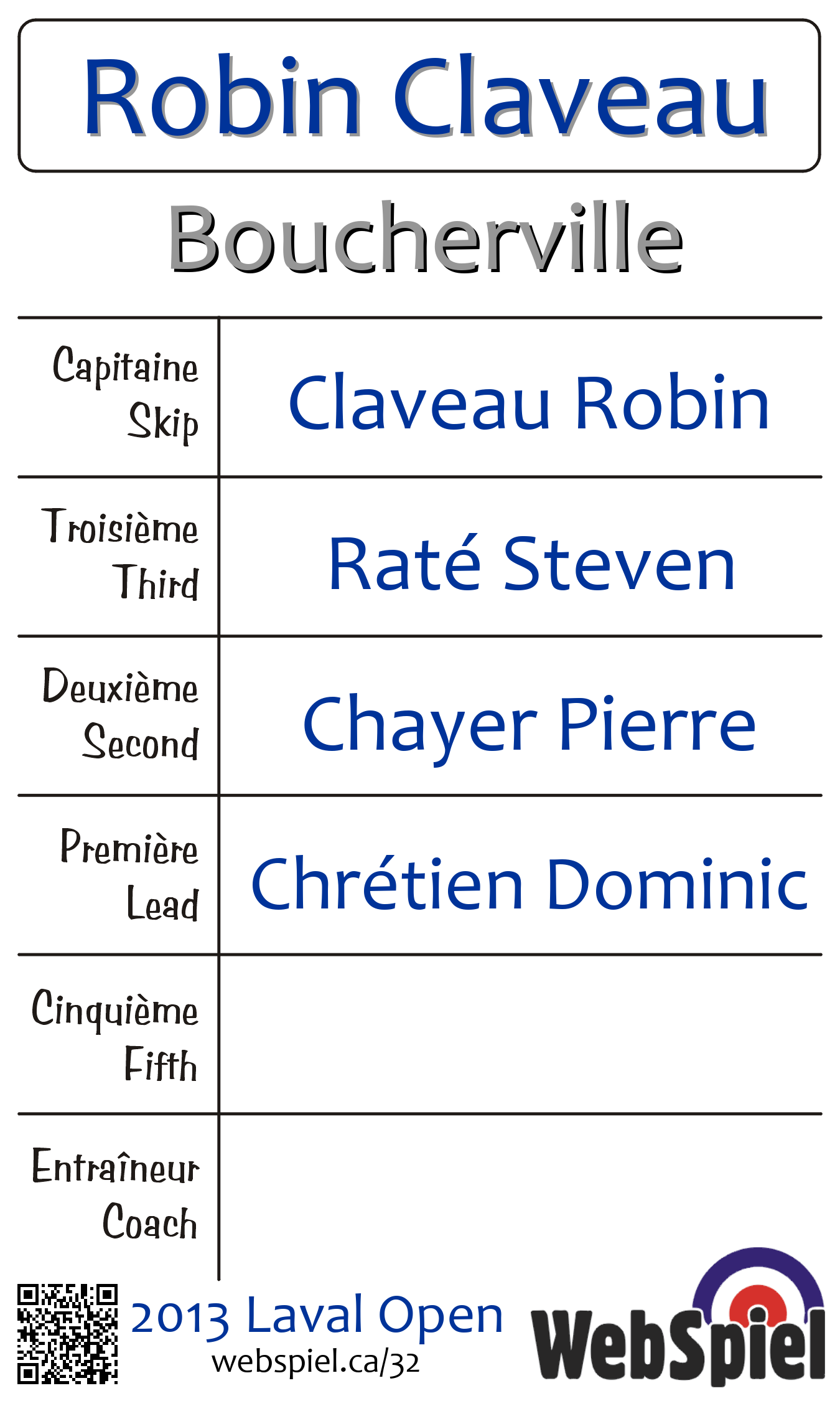 | Skip | Claveau Robin |