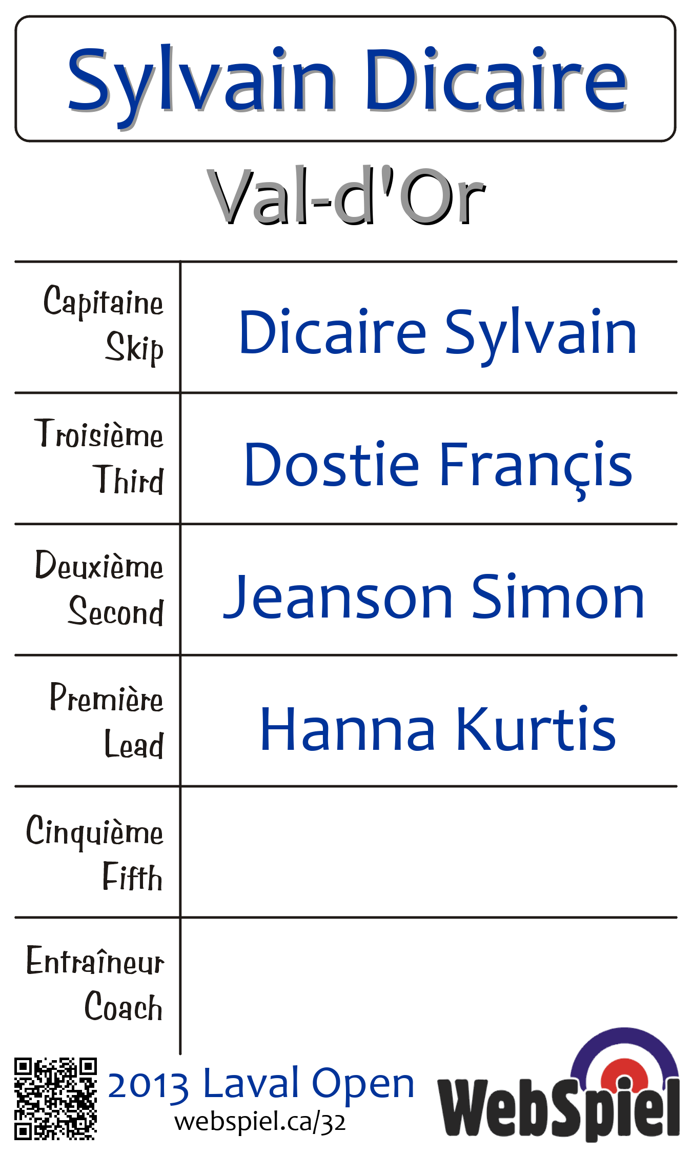 A FinalSunday, January 13th, 2013, at 3:00pm EST Club de curling Laval-sur-le-Lac, Sheet 302 | ||||||||||