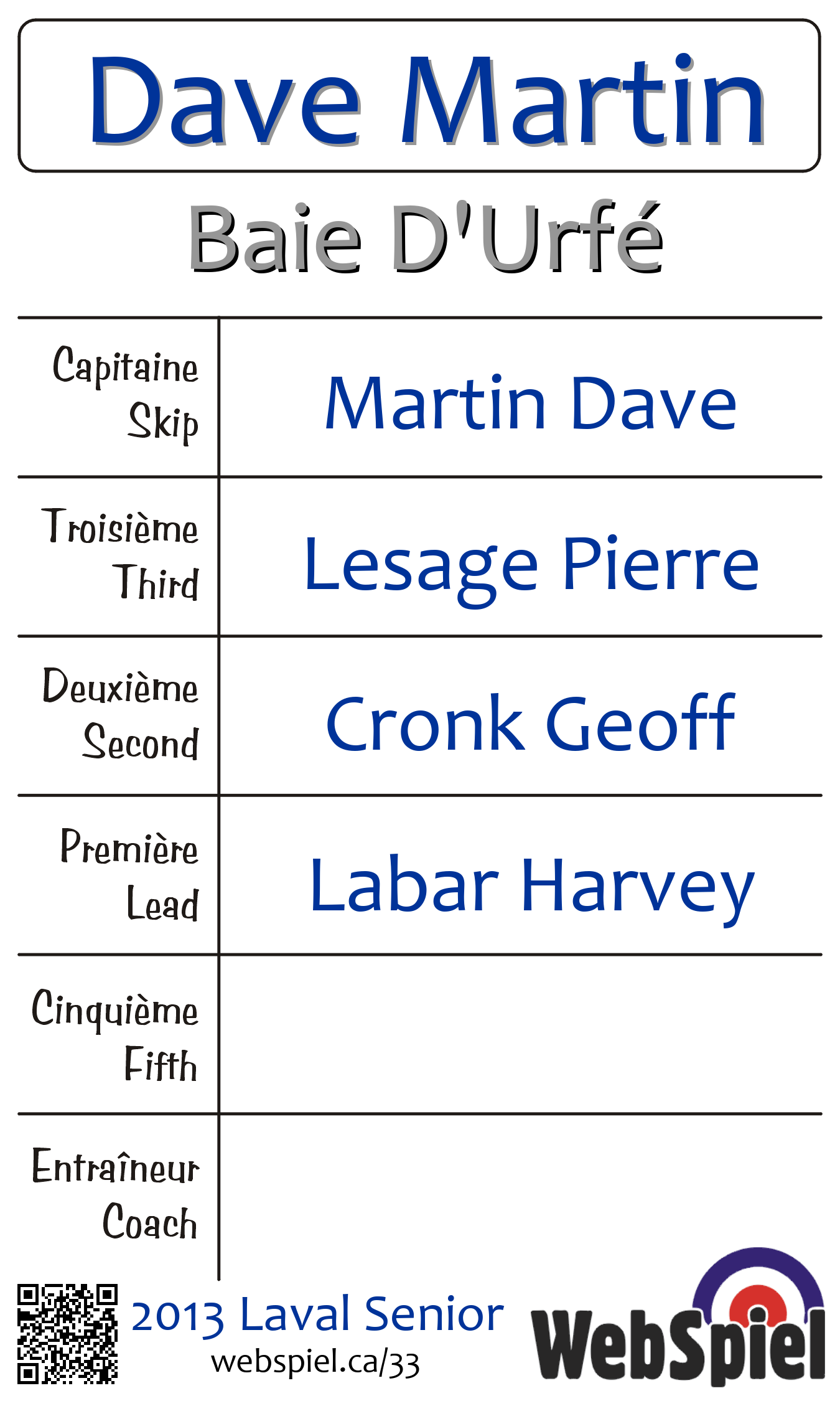 | Skip | Martin Dave |
