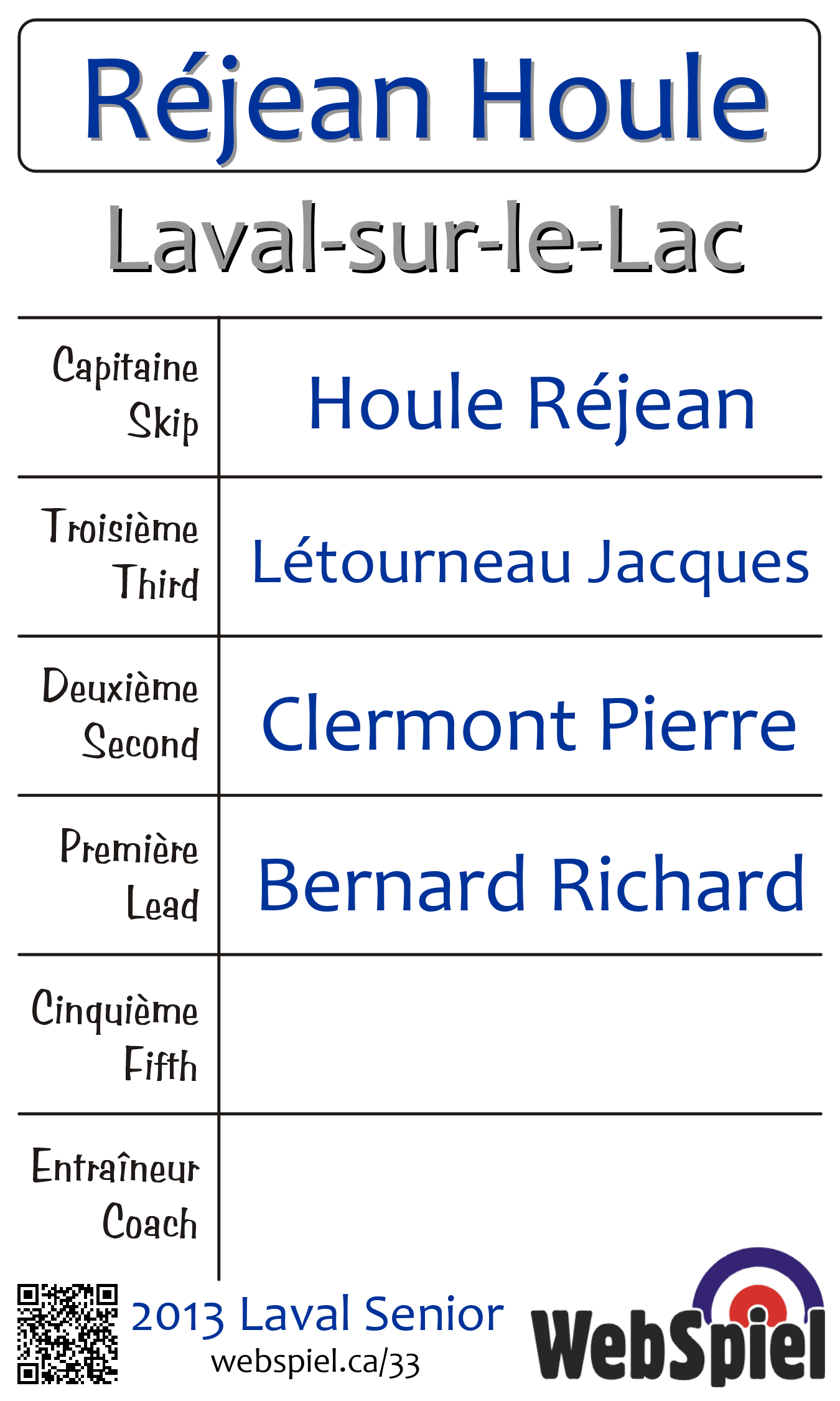 | Club | Laval-sur-le-Lac Club de curling Laval-sur-le-Lac 10 rue les Pins Laval-sur-le-Lac, QC H7R 1C7 CANADA T: 450-627-4791 F: 450-627-7511 http://www.curlinglaval.ca 3 sheets |