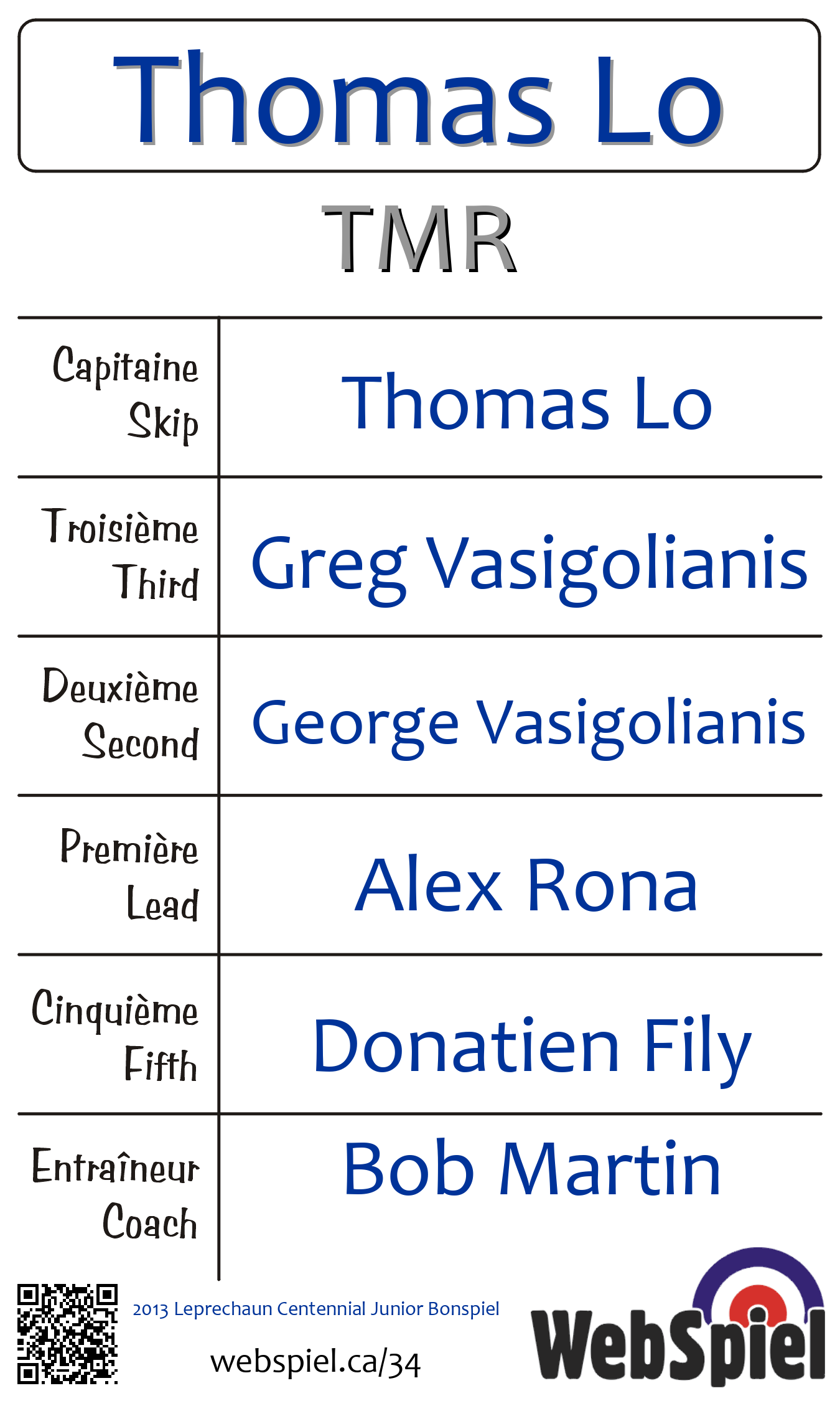 Saturday, January 26th, 2013, at 9:00am EST Montreal West Curling Club, Sheet 72 | |||||||||