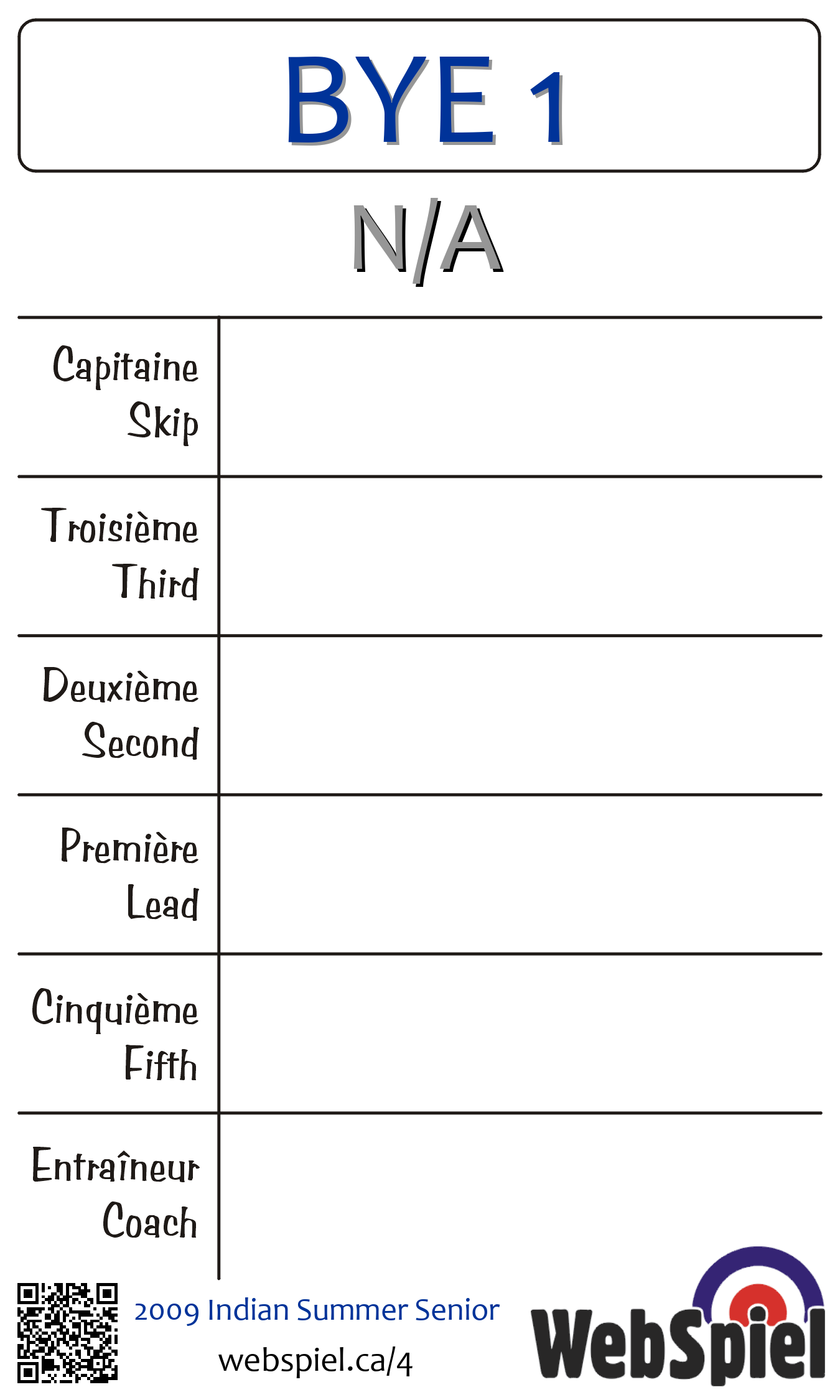 Wednesday, October 7th, 2009, at 7:00pm EDT Glenmore Curling Club, Sheet 212, Winner › A17, Loser › C01 | |||||||||