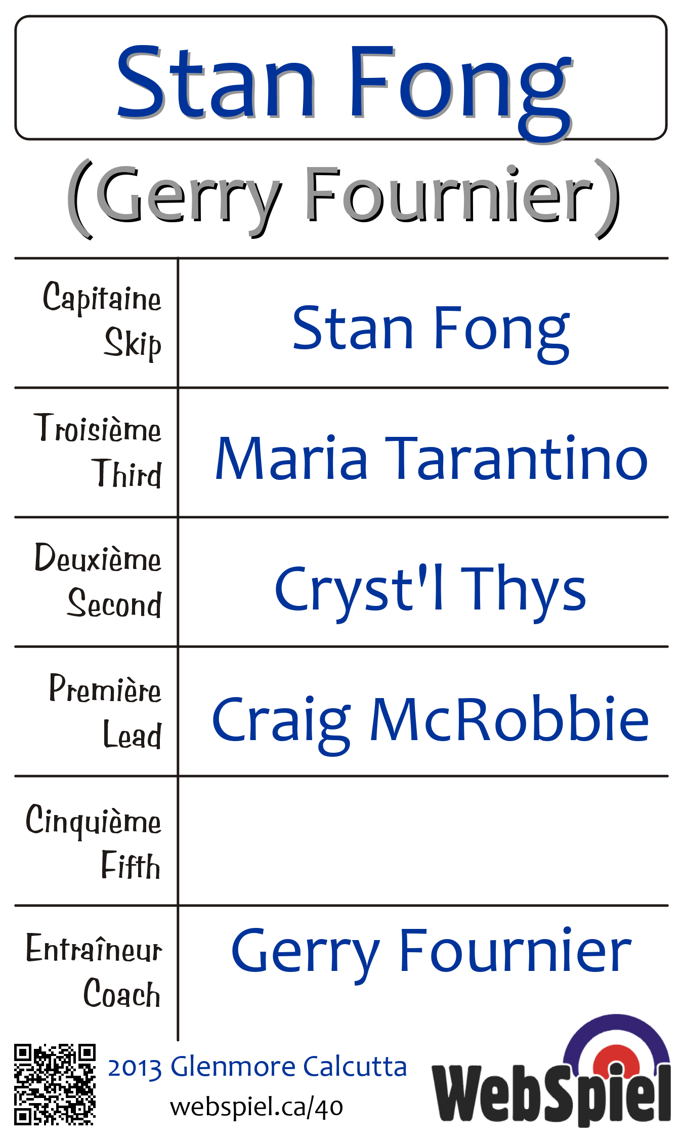Tuesday, February 5th, 2013, at 7:00pm EST Glenmore Curling Club, Sheet 212, Winner › A13, Loser › B05 | |||||||||