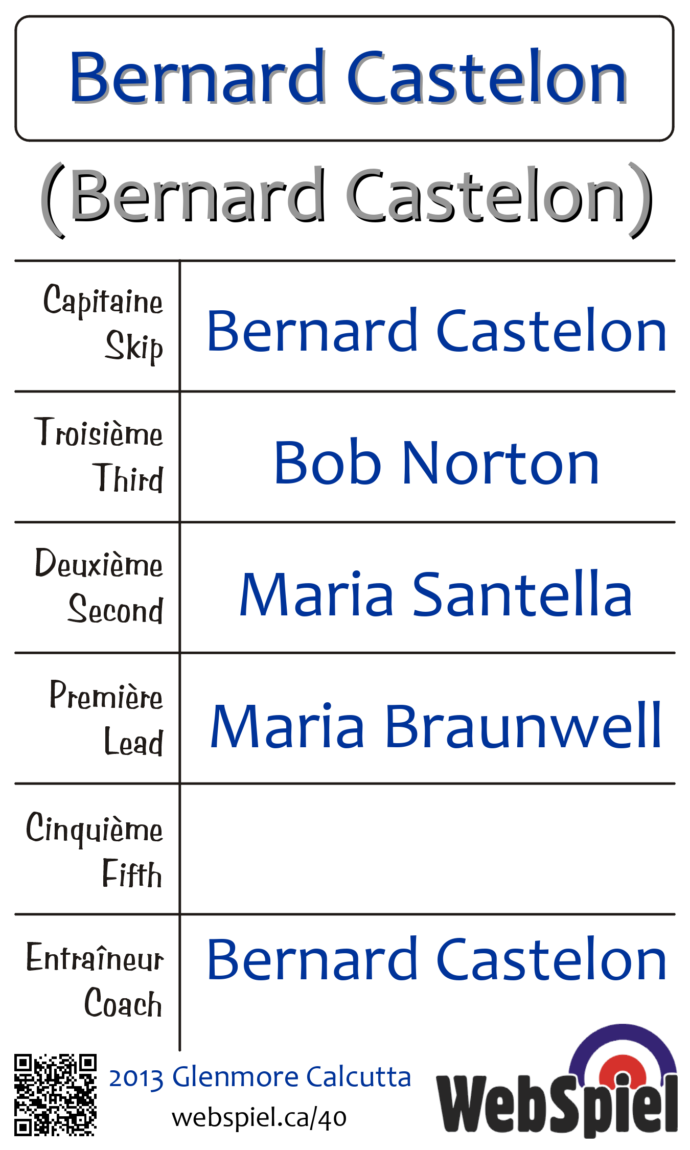 | Team | 11 - Bernard Castelon |