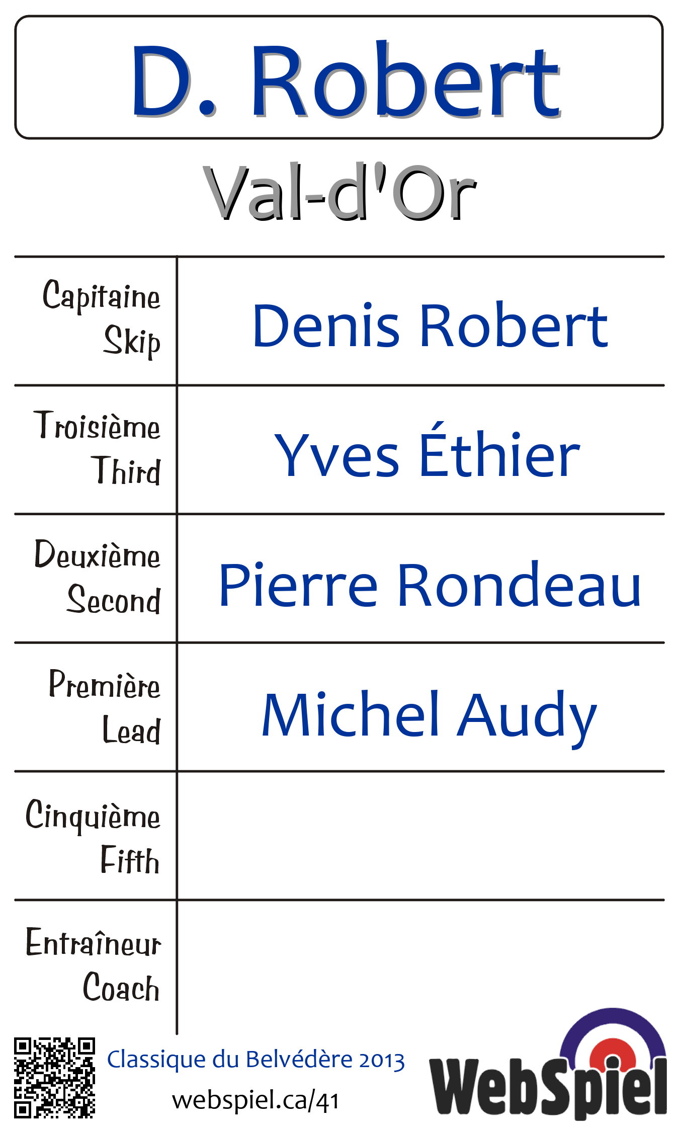 Saturday, February 9th, 2013, at 3:30pm EST Club de curling du Belvédère, Sheet 4 · D, Winner › B07, Loser › OUT | |||||||||