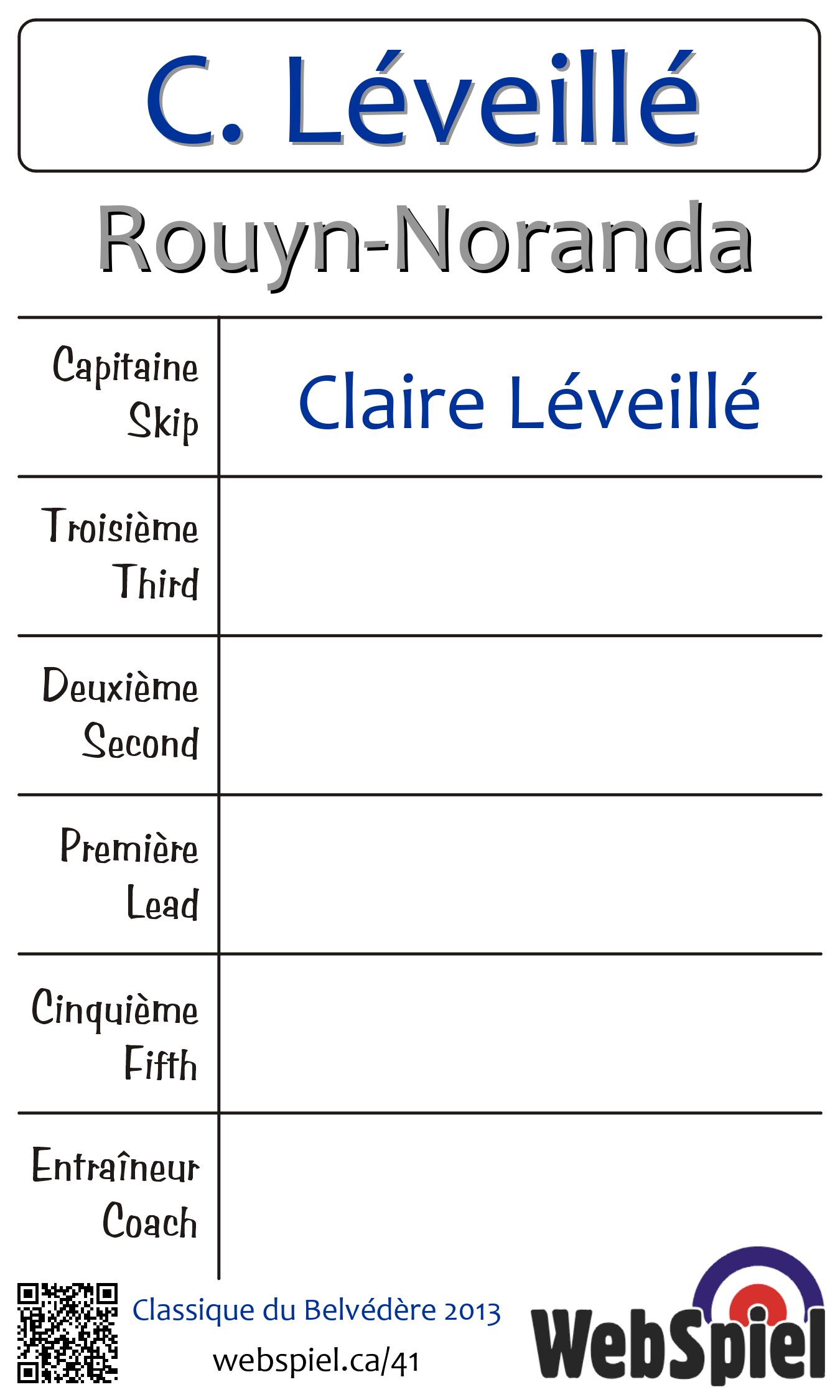| Club | Rouyn-Noranda Club de curling Noranda 218 av. Murdoch Rouyn-Noranda, QC J9X 1E6 CANADA T: 819-762-7365 http://www.curlingnoranda.ca/ 6 sheets |