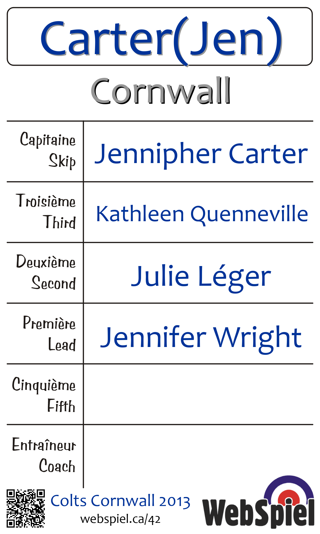| Club | Cornwall Cornwall Curling Centre 220 Water St. E., PO Box 803 Cornwall, ON K6H 5T7 CANADA T: +1-613-936-2027 http://www.cornwallcurling.ca/ 6 sheets |