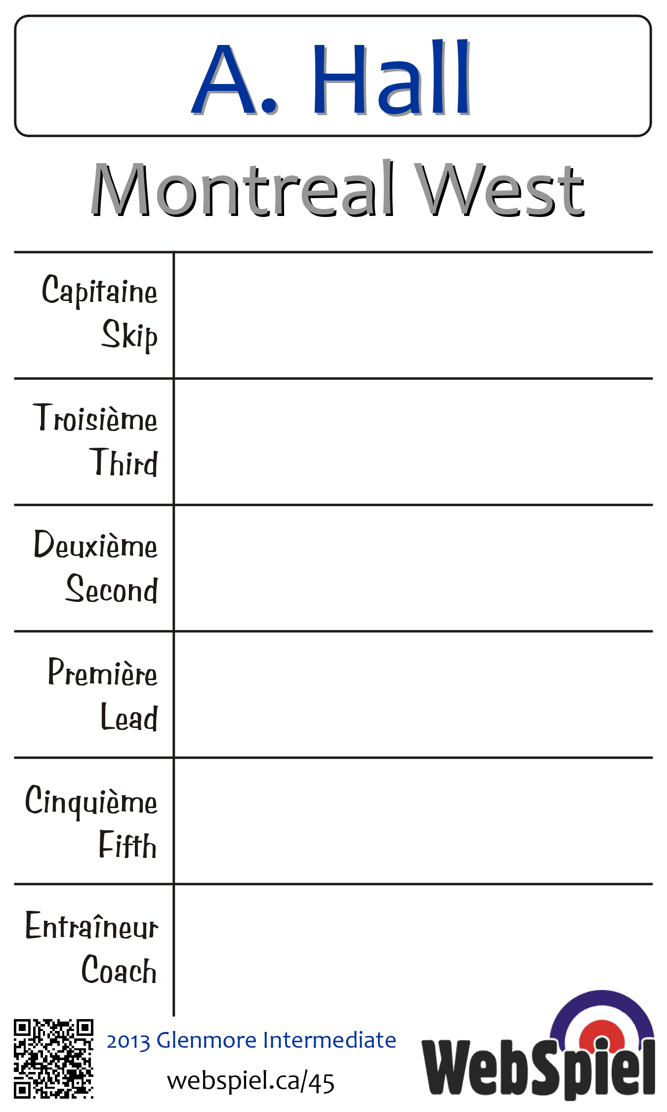| Club | Montreal West Montreal West Curling Club 17 Ainslie Road Montréal ouest, QC H4X 1K4 CANADA T: 514-486-5831 http://mtlwestcurl.org/ 4 sheets |