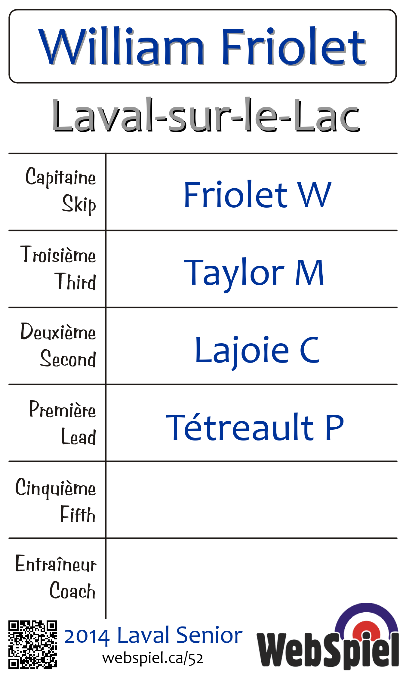 | Club | Laval-sur-le-Lac Club de curling Laval-sur-le-Lac 10 rue les Pins Laval-sur-le-Lac, QC H7R 1C7 CANADA T: 450-627-4791 F: 450-627-7511 http://www.curlinglaval.ca 3 sheets |