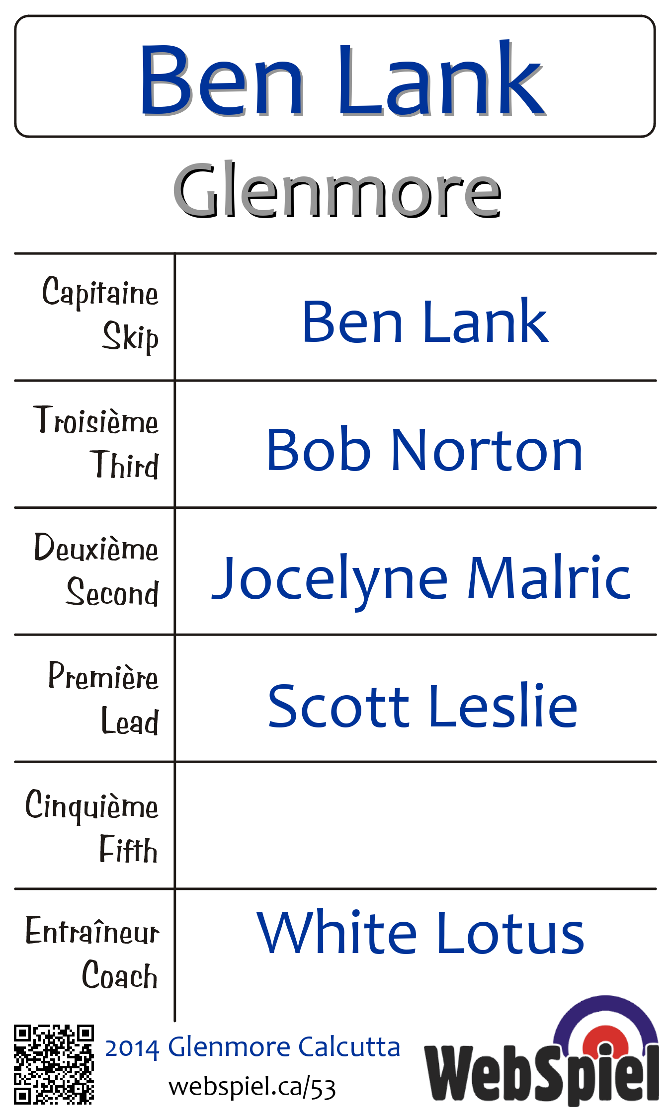 Monday, February 24th, 2014, at 7:00pm EST Glenmore Curling Club, Sheet 213, Winner › A11, Loser › B03 | |||||||||