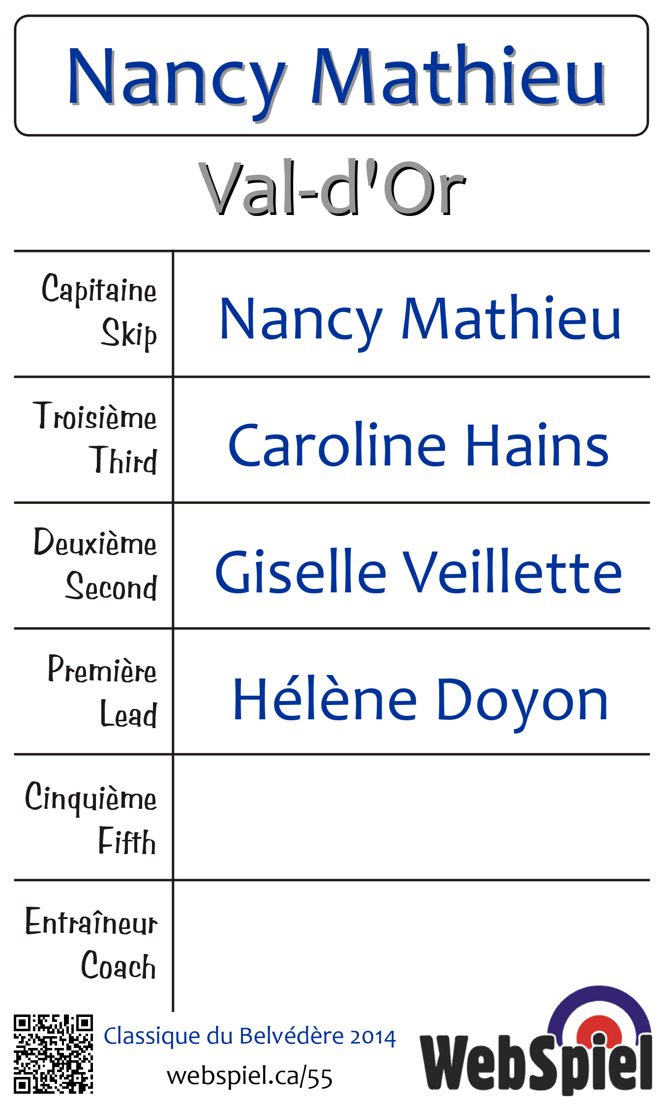 Wednesday, February 12th, 2014, at 6:45pm EST Club de curling du Belvédère, Sheet 2 · B | |||||||||