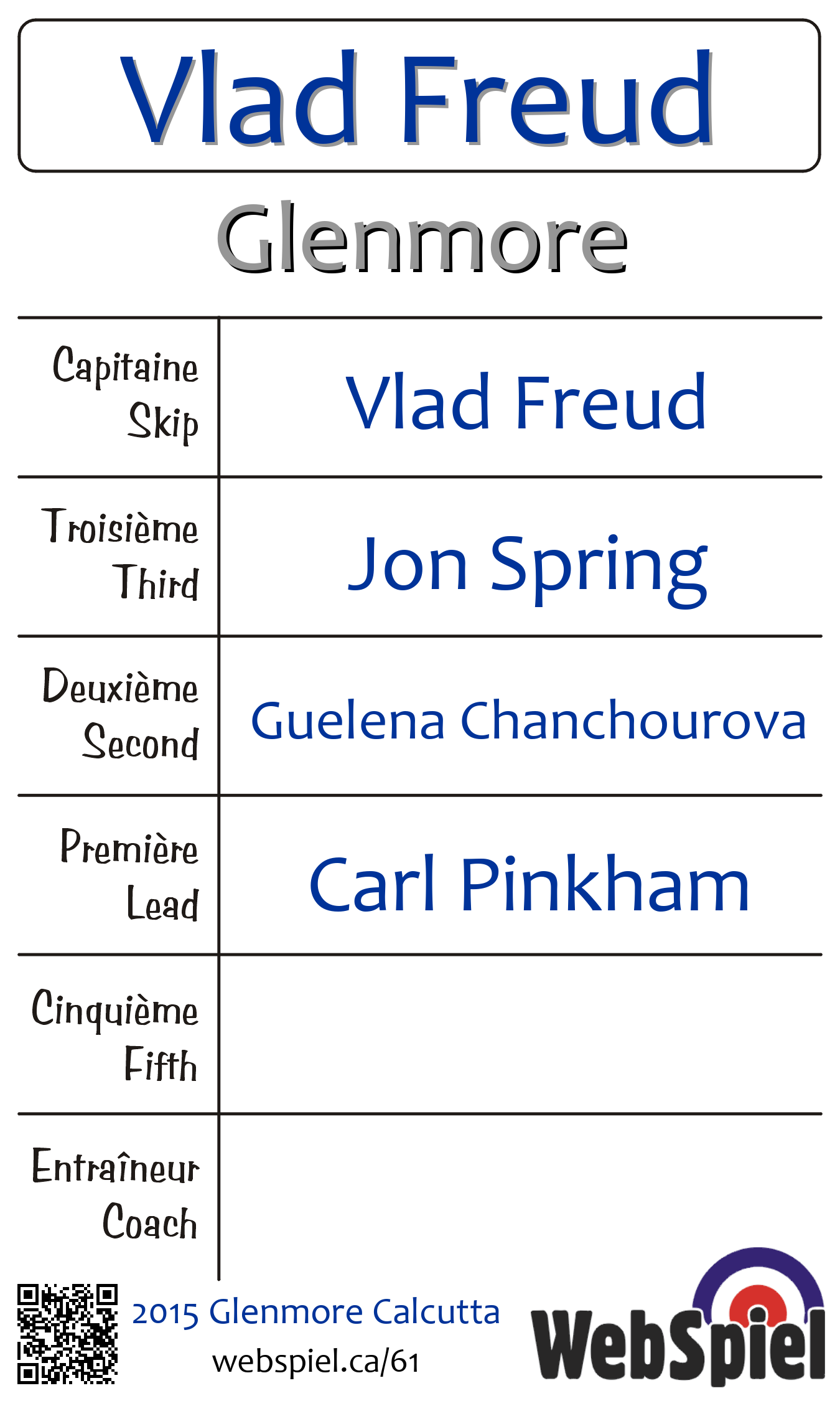 Thursday, February 26th, 2015, at 7:00pm EST Glenmore Curling Club, Sheet 213, Winner › D04, Loser › OUT | |||||||||