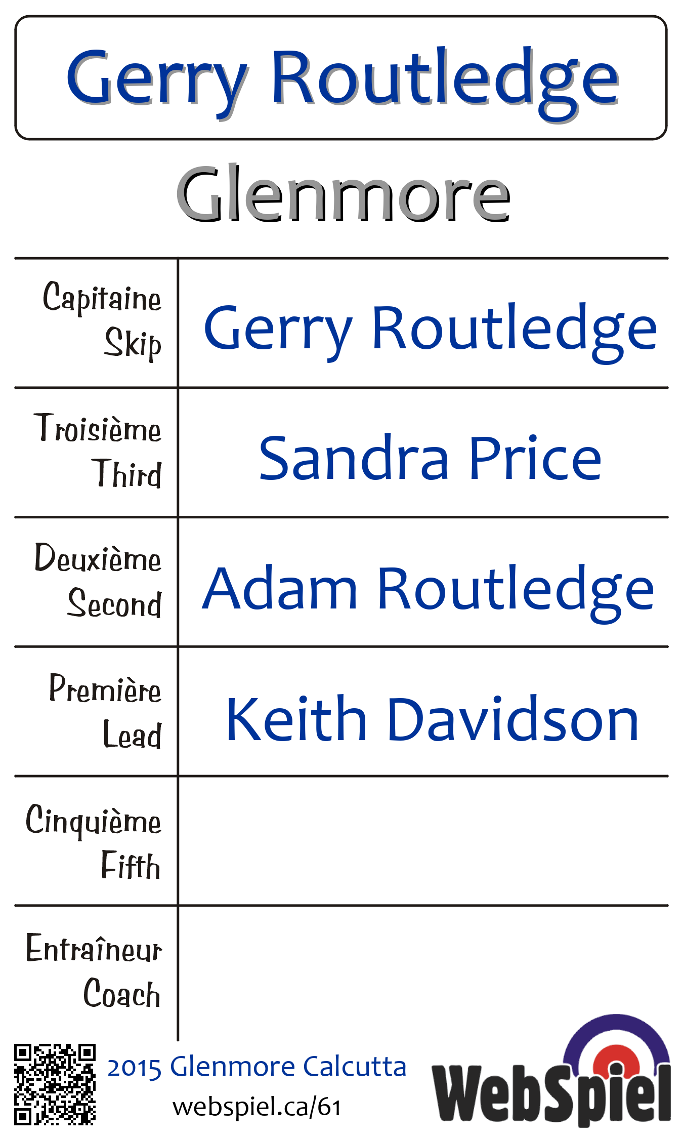 D FinalSaturday, February 28th, 2015, at 3:30pm EST Glenmore Curling Club, Sheet 214 | |||||||||