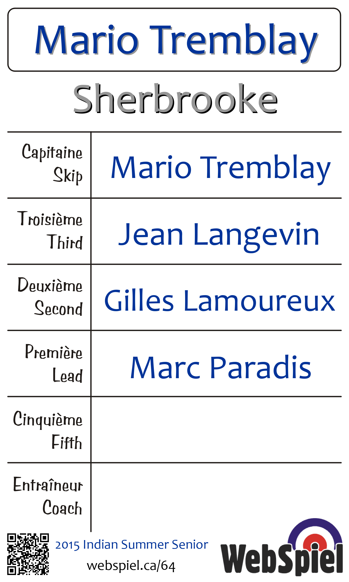 Friday, October 9th, 2015, at 5:00pm EDT Glenmore Curling Club, Sheet 212, Winner › A17, Loser › B05 | |||||||||