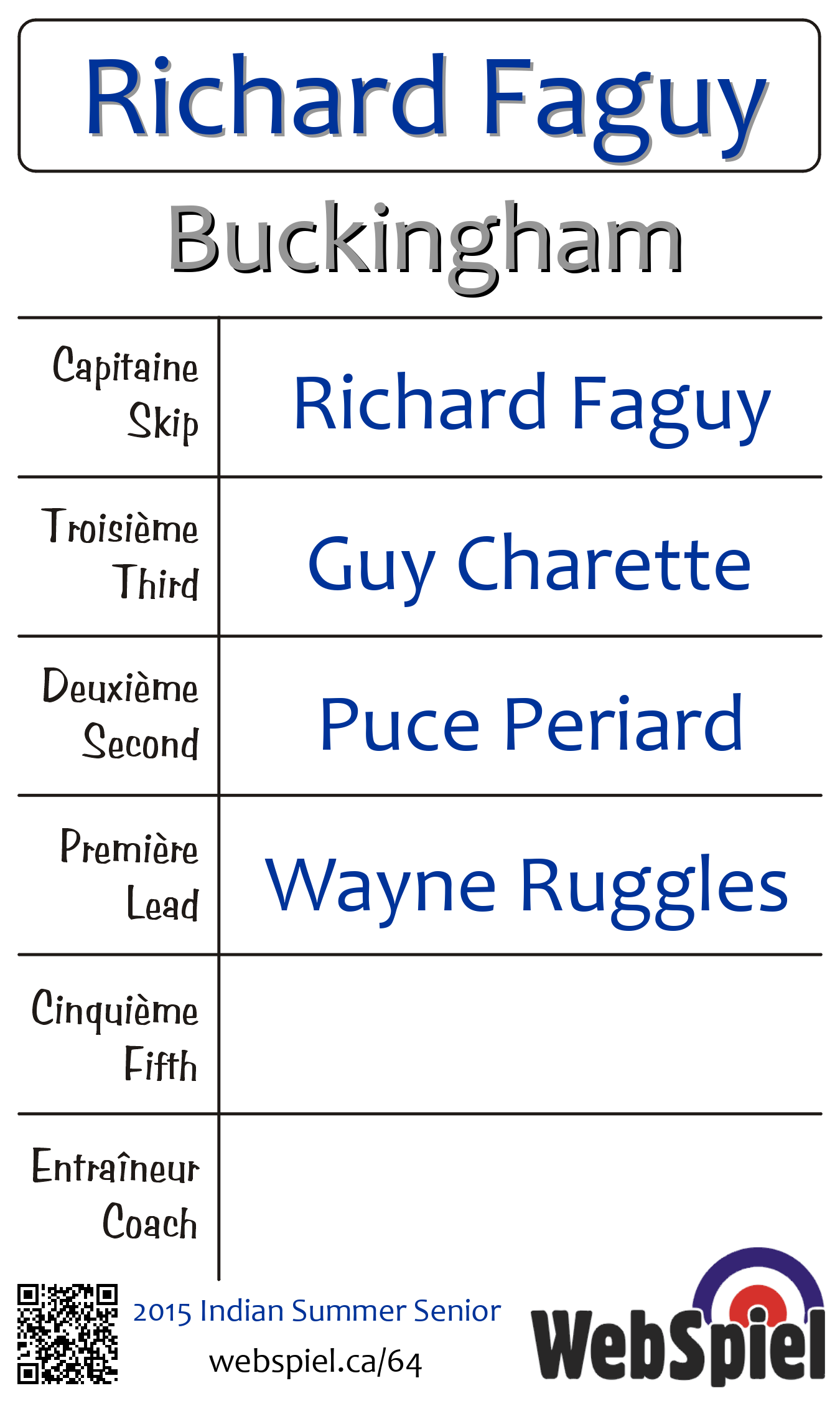 | Club | Buckingham Club de curling Buckingham C.P. 133 Buckingham, QC J8L 2X2 CANADA T: 819-986-3781 http://www.buckingham.ovca.com |