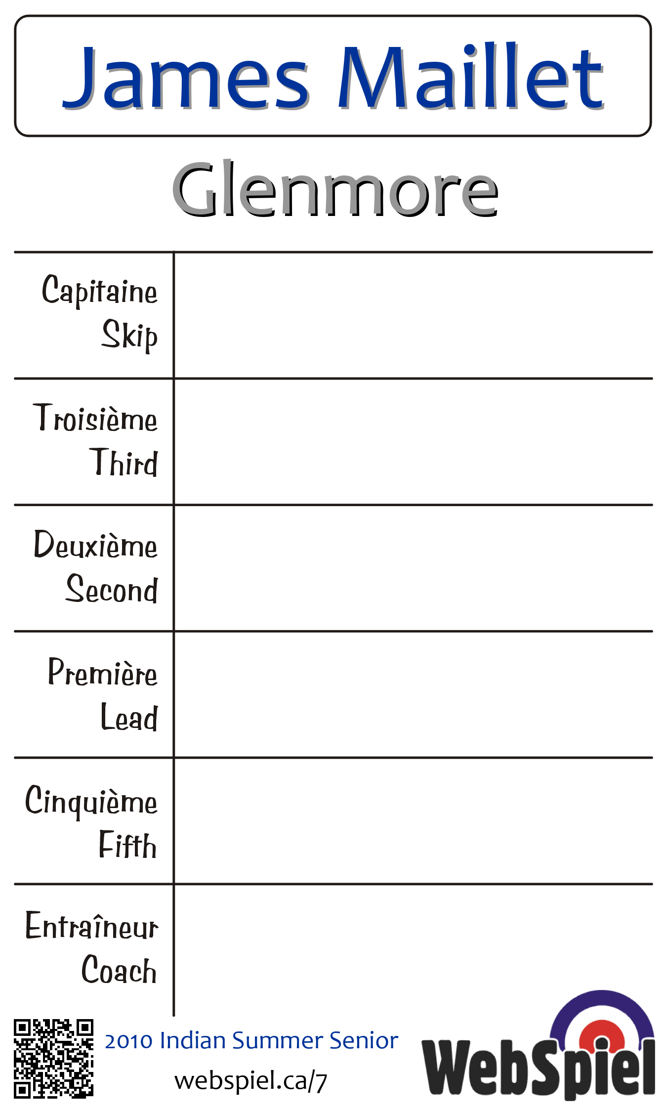 Glenmore Curling Club, Sheet 214, Winner › C07, Loser › OUT