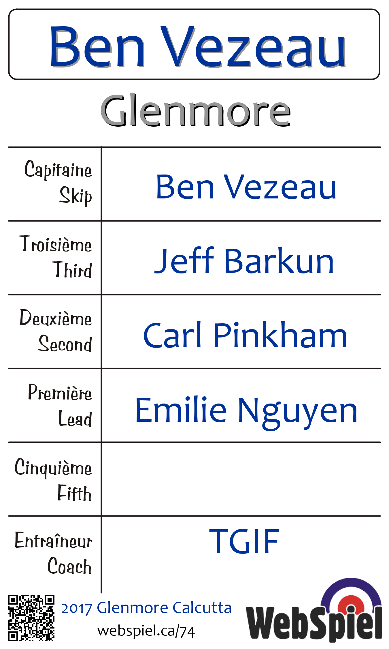 Thursday, March 9th, 2017, at 7:00pm EST Glenmore Curling Club, Sheet 213, Winner › D03, Loser › OUT | |||||||||
