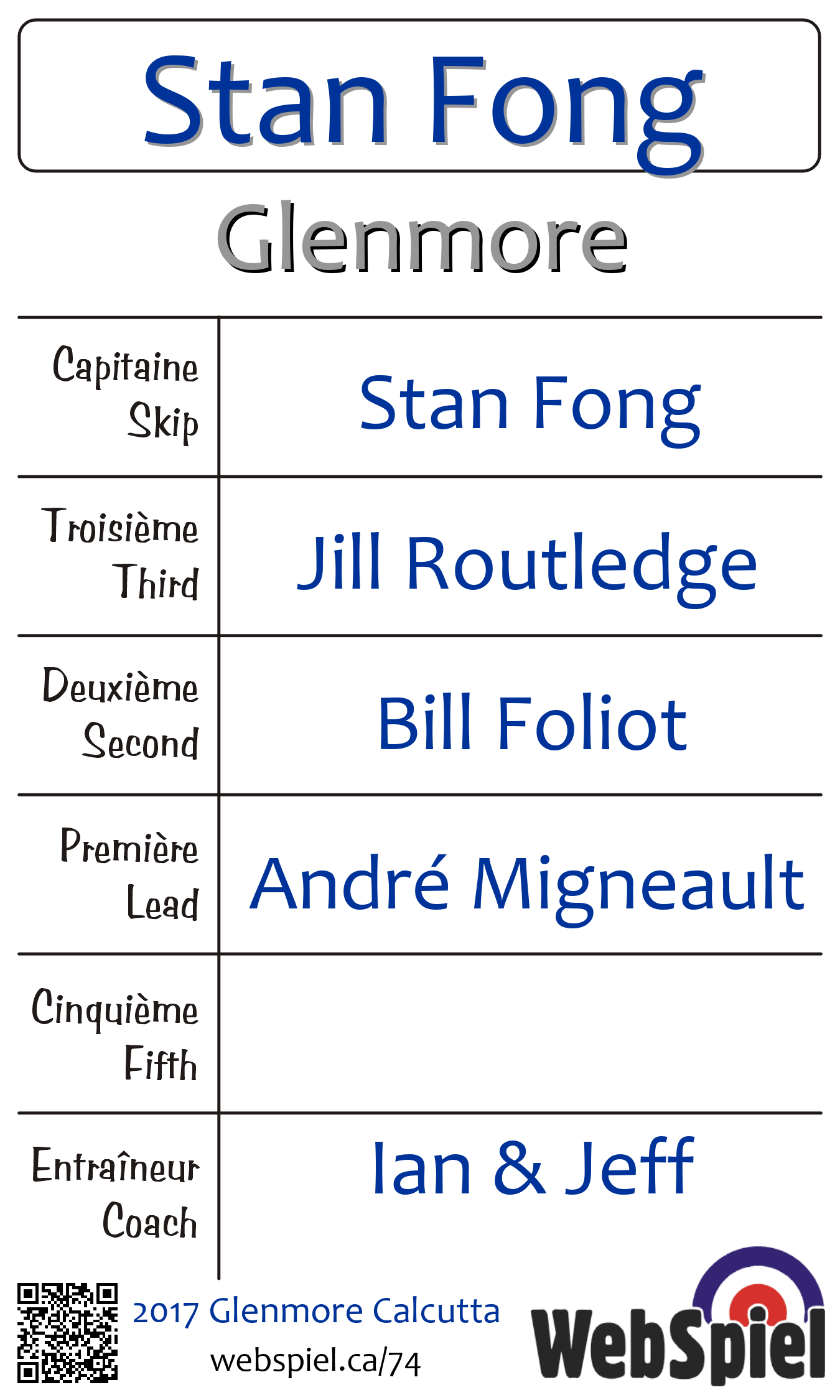 B FinalSaturday, March 11th, 2017, at 3:00pm EST Glenmore Curling Club, Sheet 212 | |||||||||