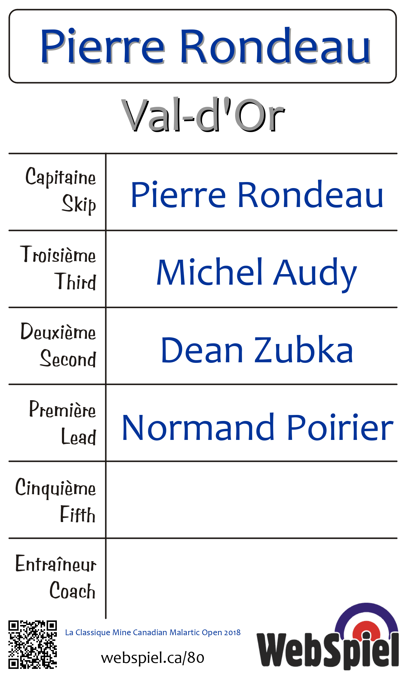 Saturday, February 3rd, 2018, at 10:00am EST Club de curling du Belvédère, Sheet 4 · D, Winner › C14, Loser › D04 | |||||||||