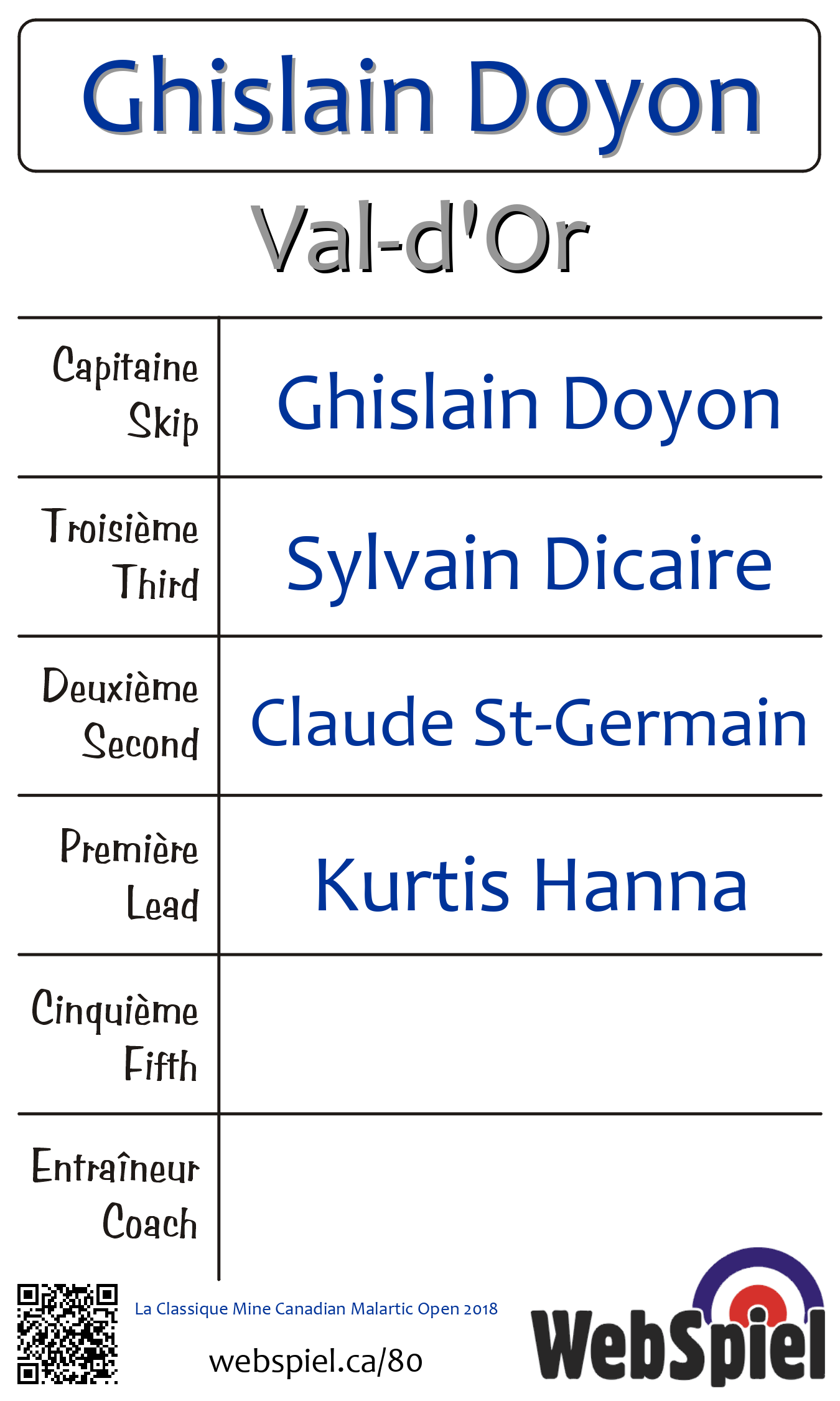 Saturday, February 3rd, 2018, at 6:00pm EST Club de curling du Belvédère, Sheet 1 · A, Winner › A38, Loser › OUT | |||||||||