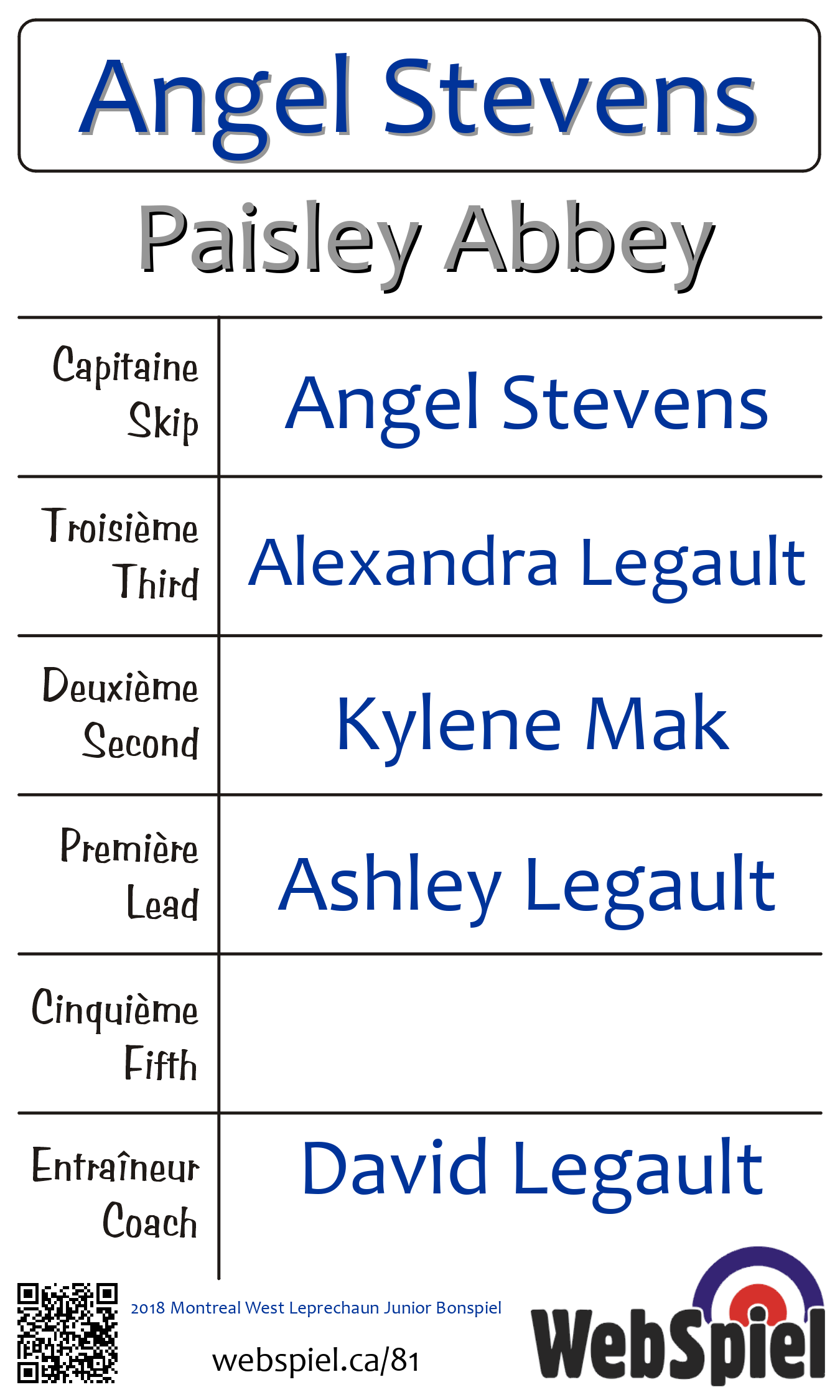 Completed. 2018 Montreal West Leprechaun Junior Bonspiel · Draw G11 Points Format