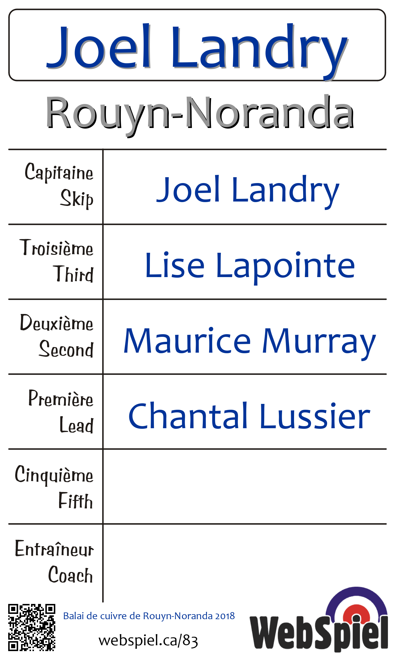 | Club | Rouyn-Noranda Club de curling Noranda 218 av. Murdoch Rouyn-Noranda, QC J9X 1E6 CANADA T: 819-762-7365 http://www.curlingnoranda.ca/ 6 sheets |