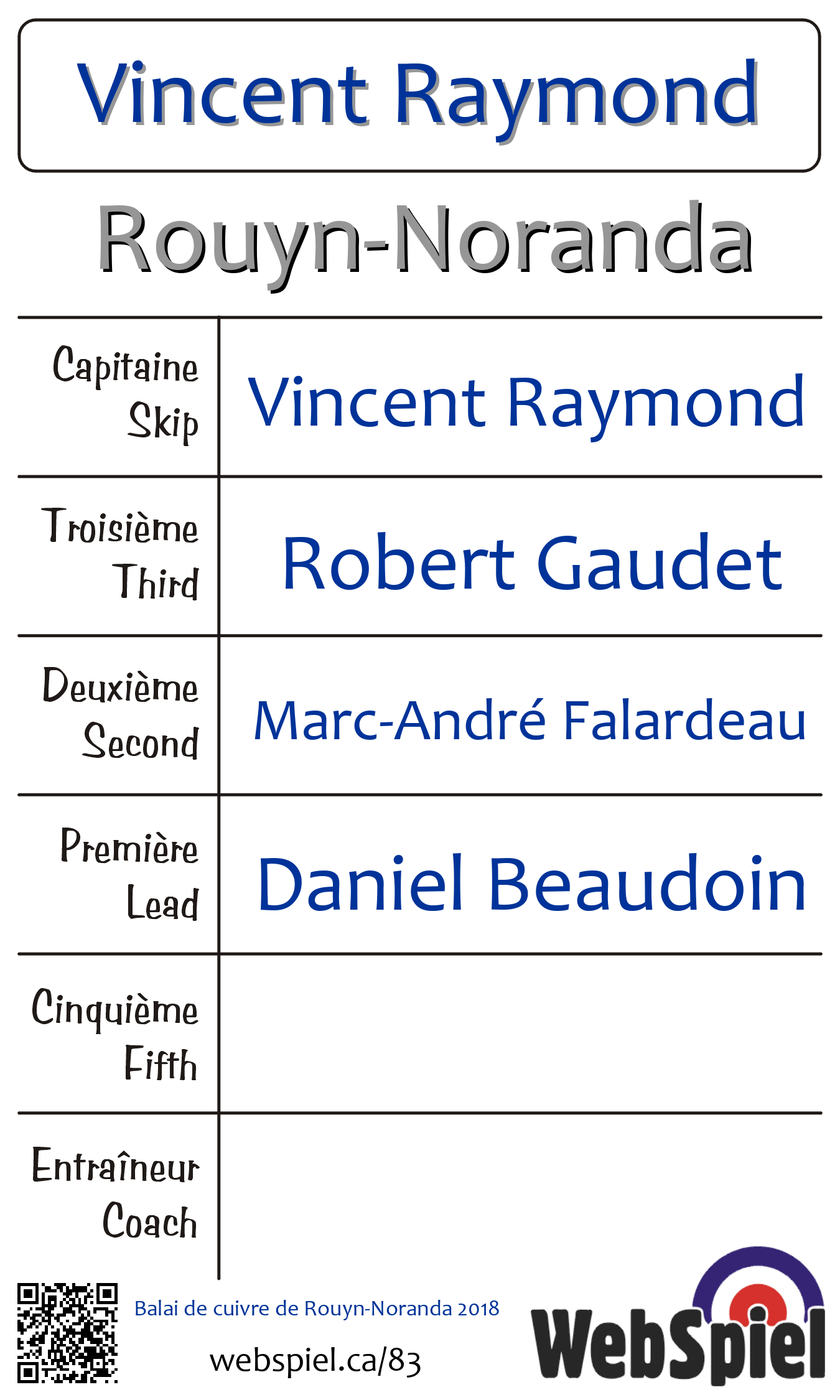 Saturday, March 10th, 2018, at 2:00pm EST Club de curling Noranda, Sheet 3 · C, Winner › A60, Loser › B12 | |||||||||